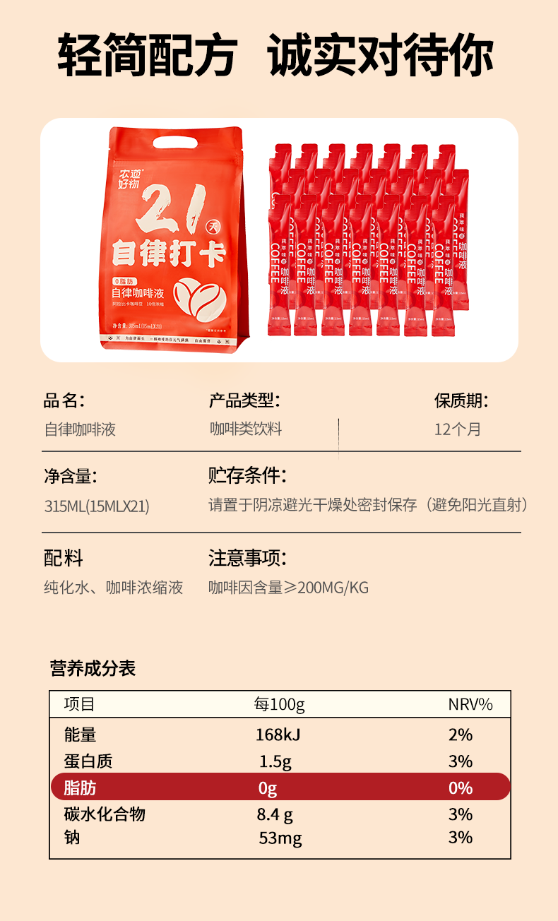 商品名称:农道好物无糖精浓缩液0脂0蔗糖速溶黑咖啡美式无蔗糖超浓缩咖啡液