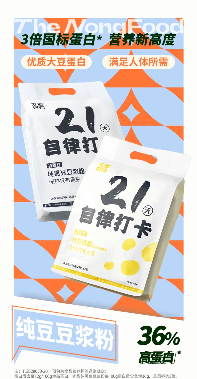 商品名称:农道好物纯黄豆豆浆粉21天装+纯黑豆豆浆粉21天装