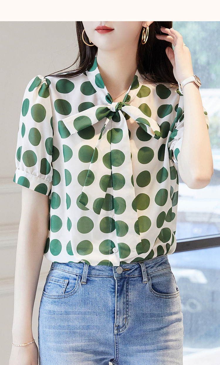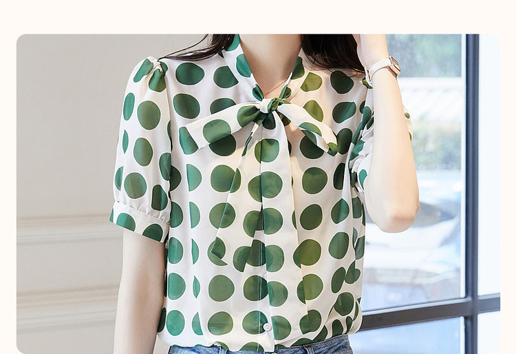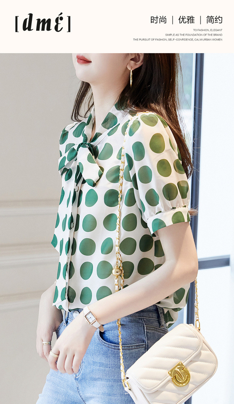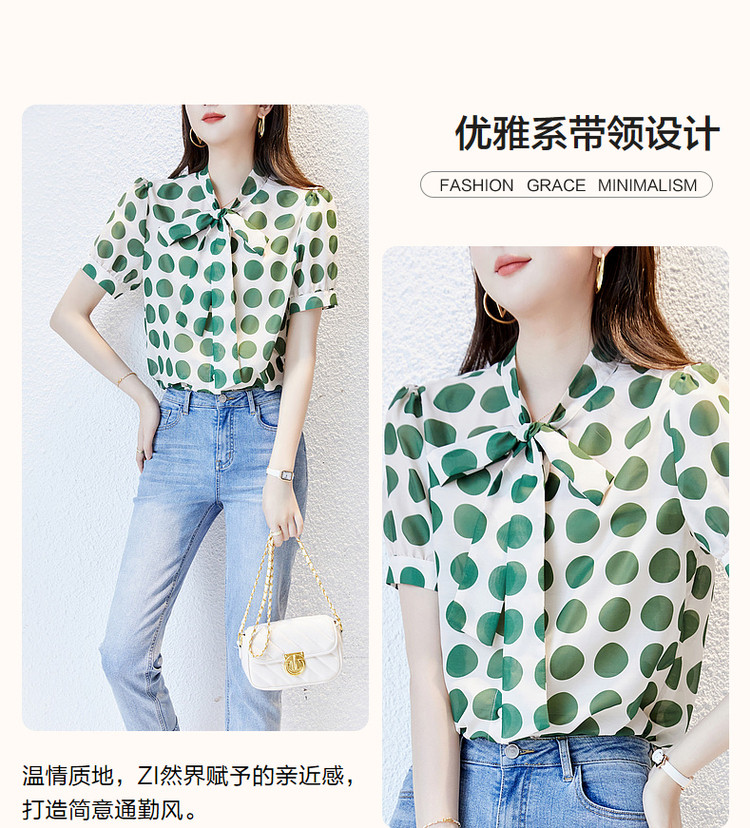 商品名称:【系带领圆点印花衬衫】夏通勤短袖衬衣女装上衣 349377