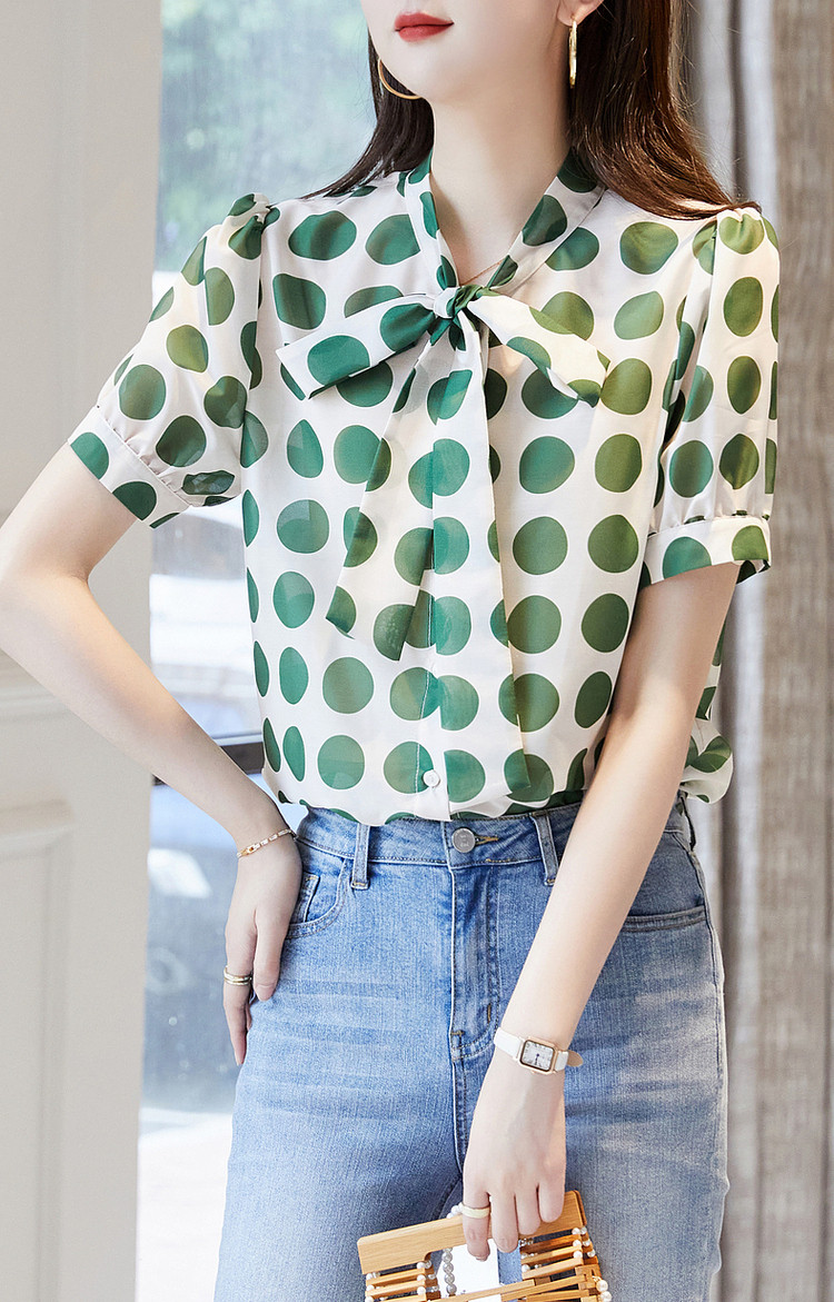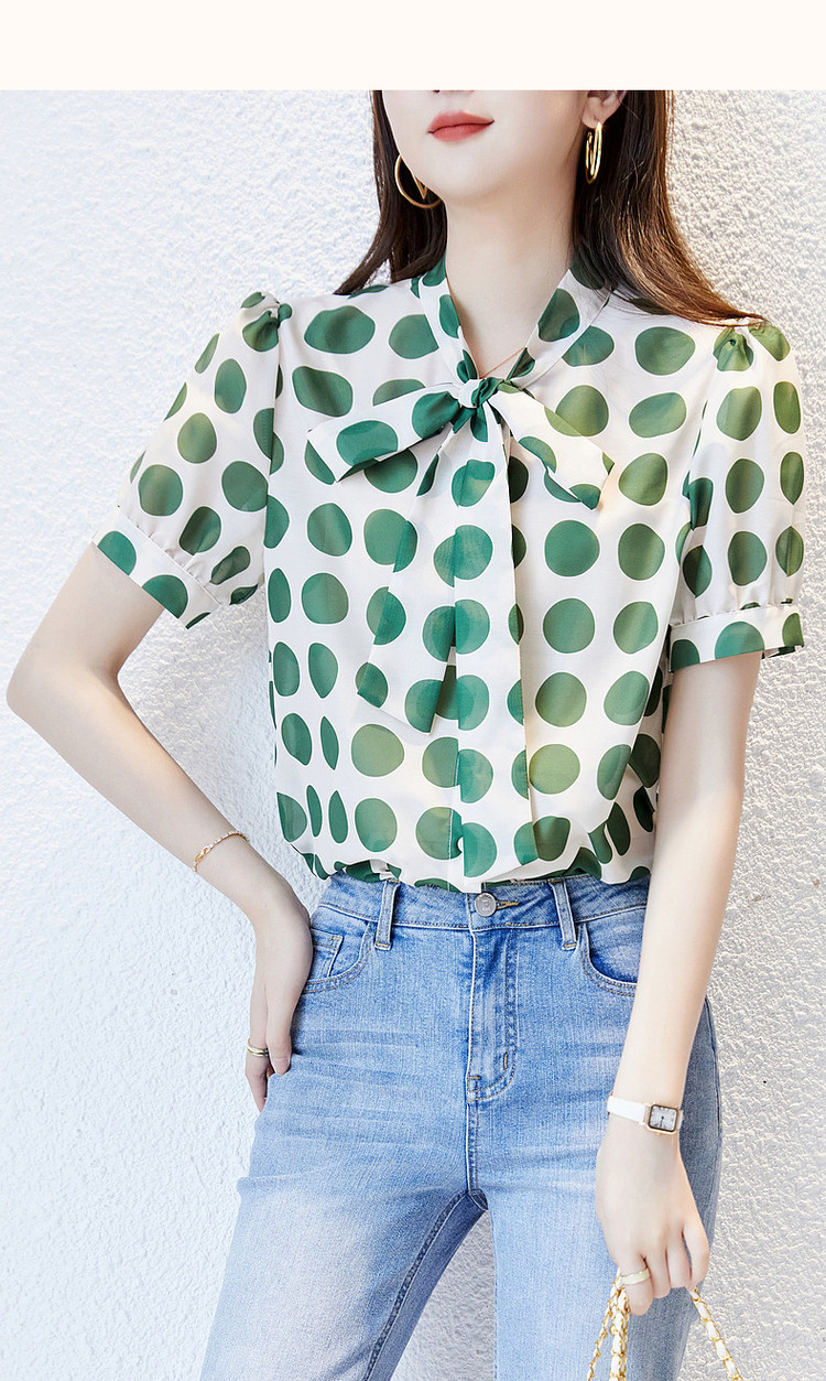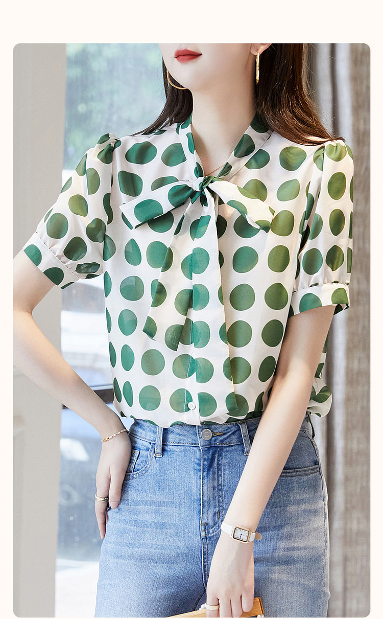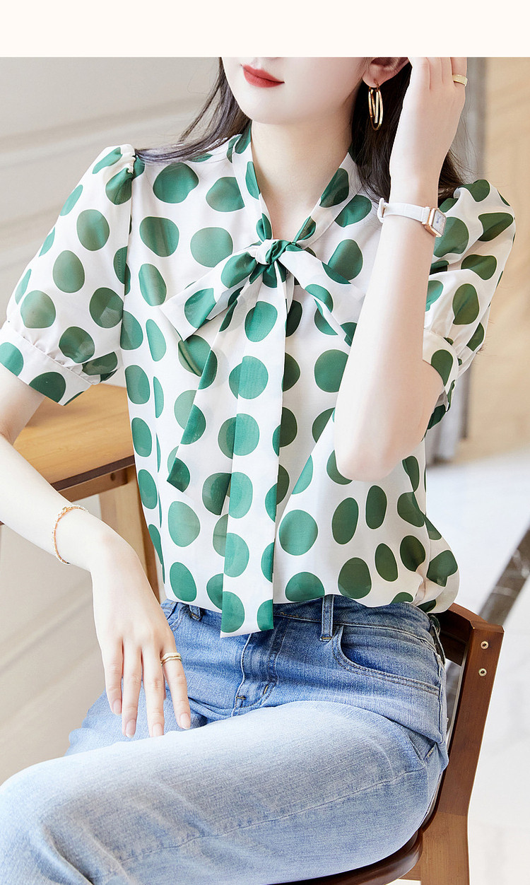 商品名称:【系带领圆点印花衬衫】夏通勤短袖衬衣女装上衣 349377