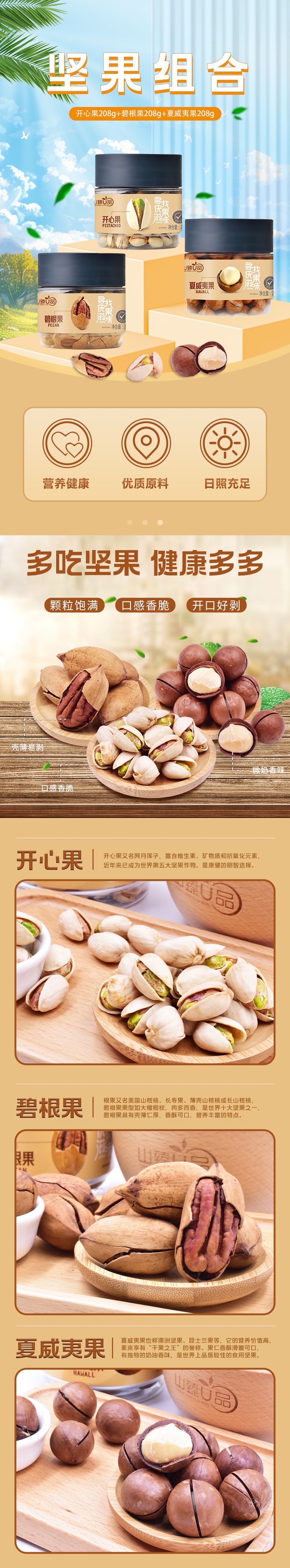 商品名称:山臻U品坚果组合A (开心果208g+碧根果208g+夏威夷果208g)