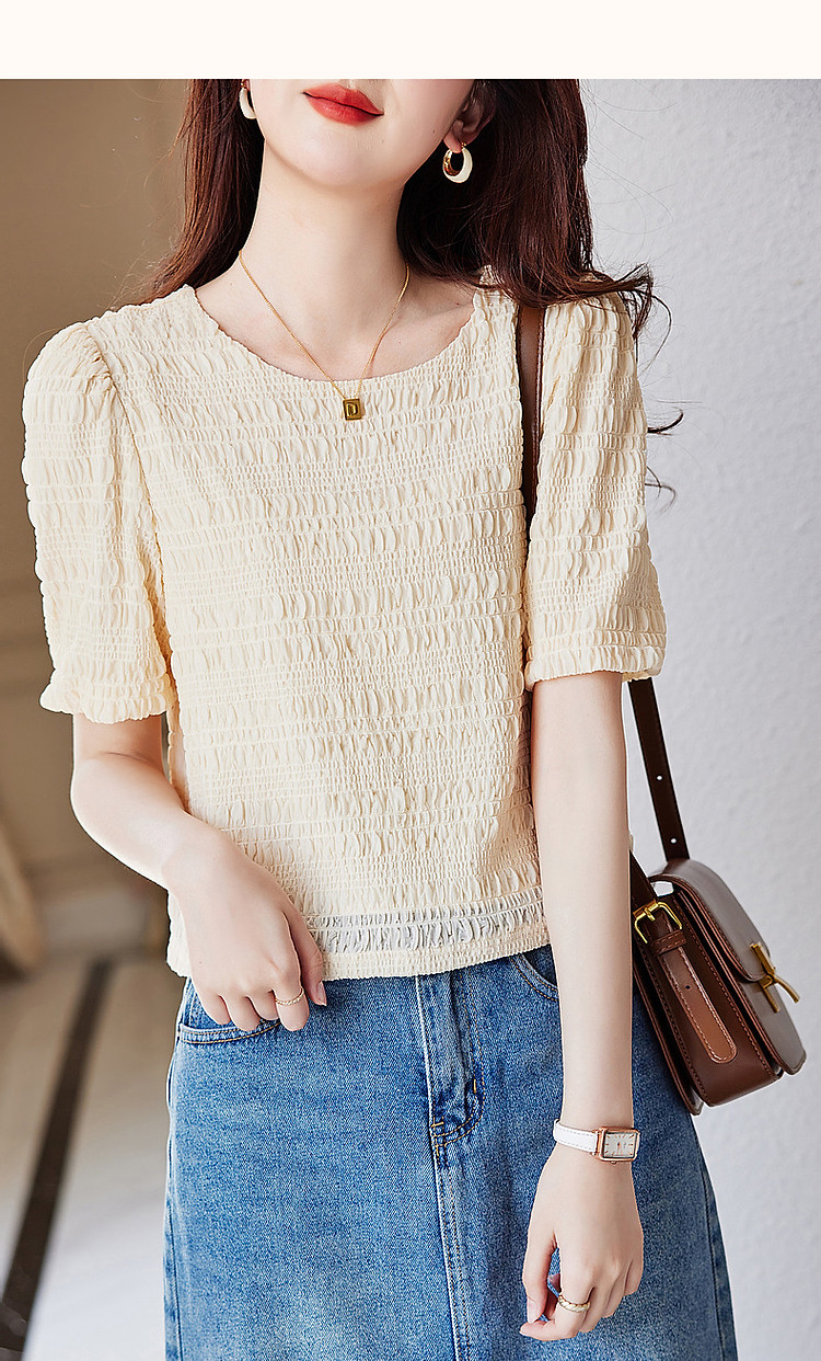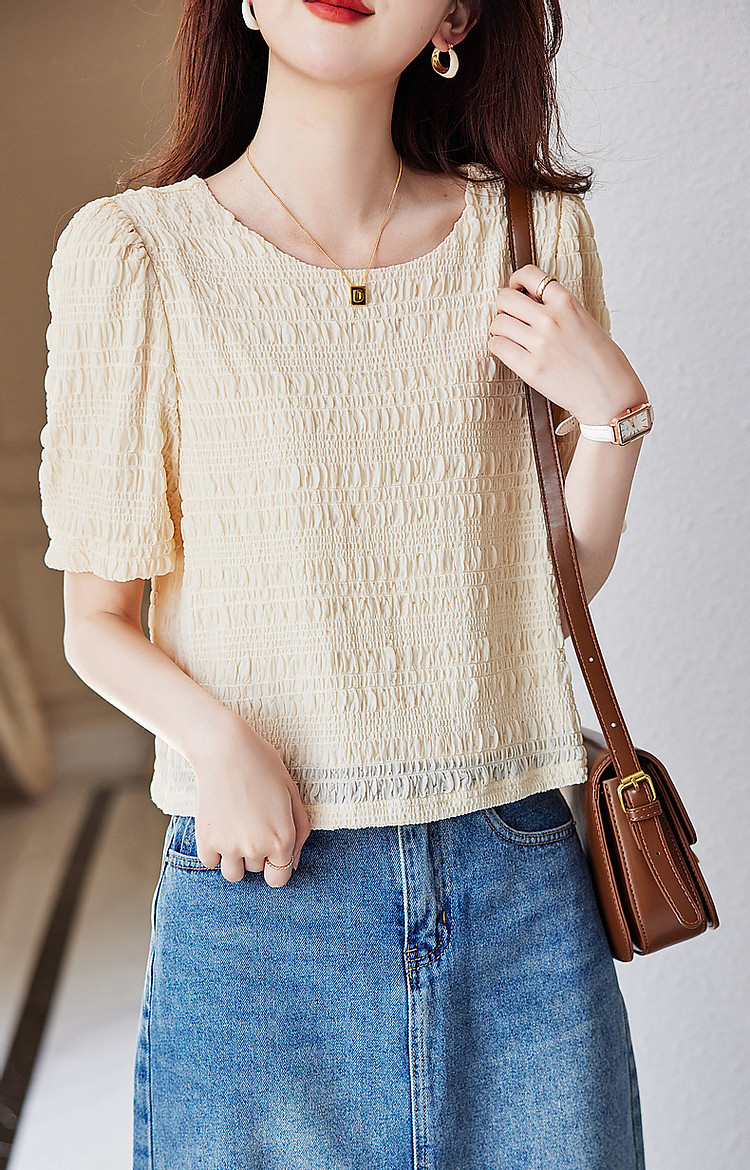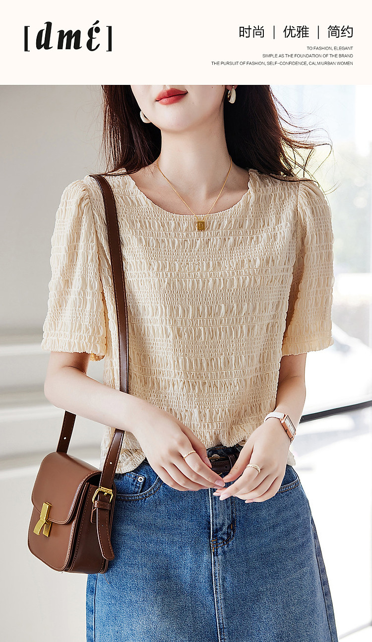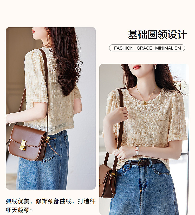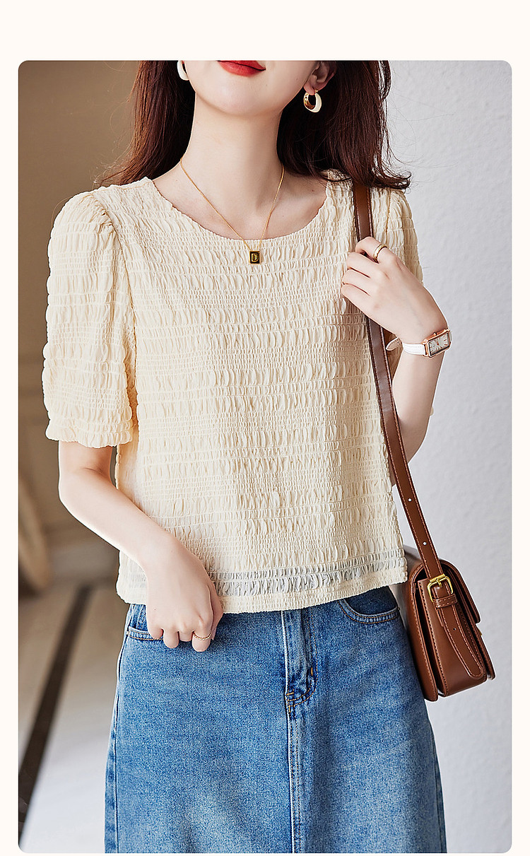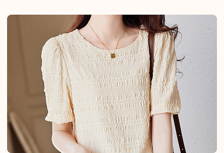 【肌理感泡泡袖衬衫】夏圆领中袖微弹衬衣女装上衣 067841