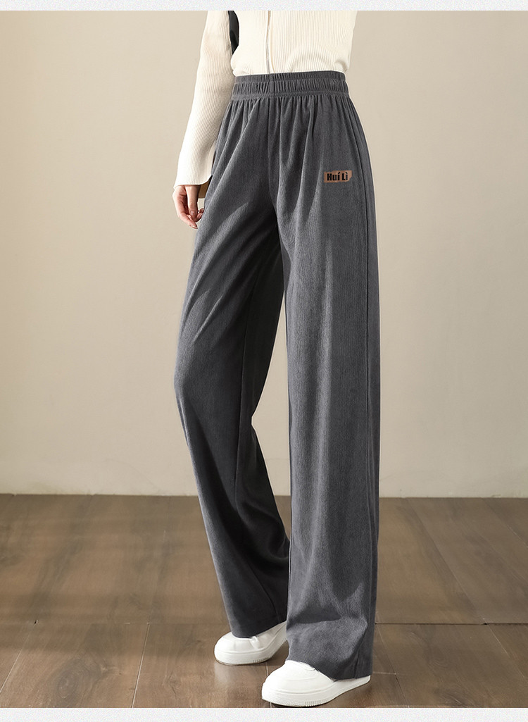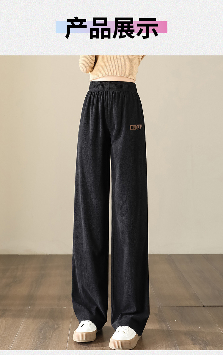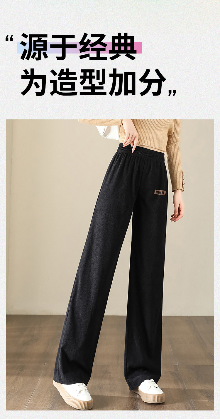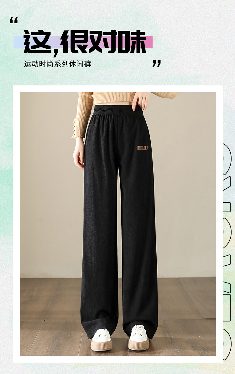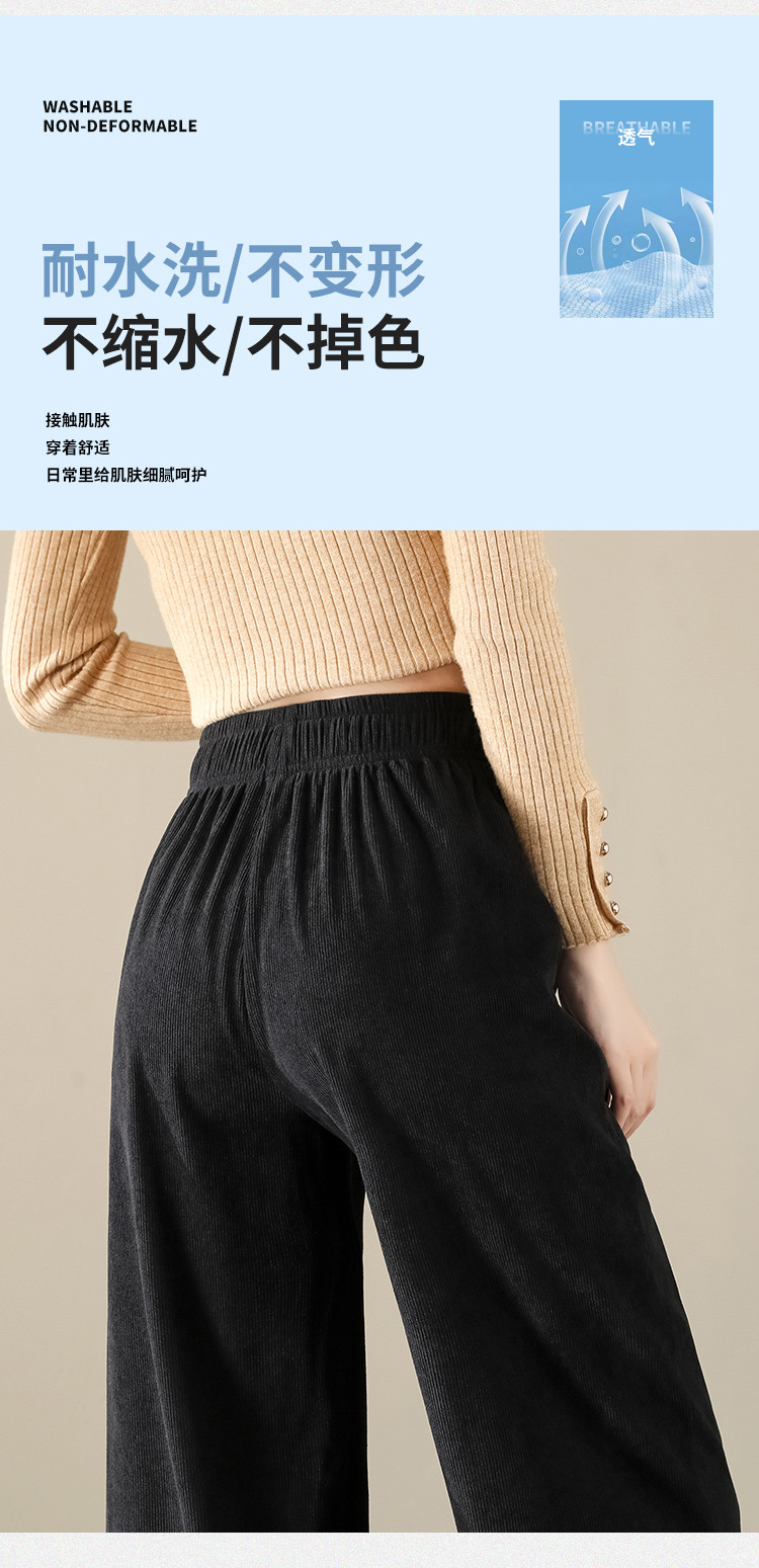 简约风灯芯绒休闲裤女柔和亲肤阔腿裤女宽松显高显瘦百搭女休闲裤 928275
