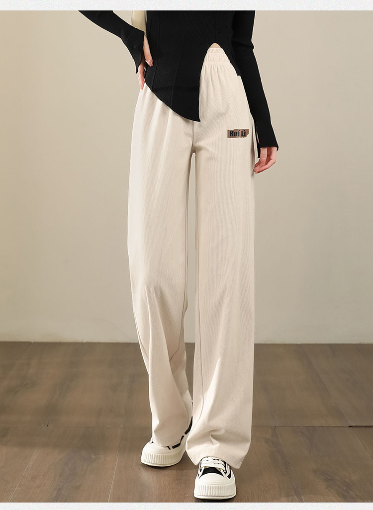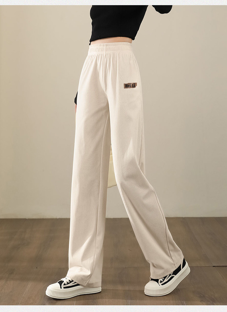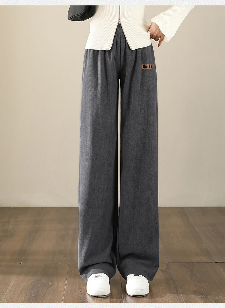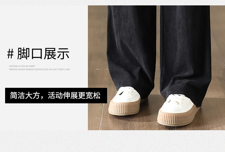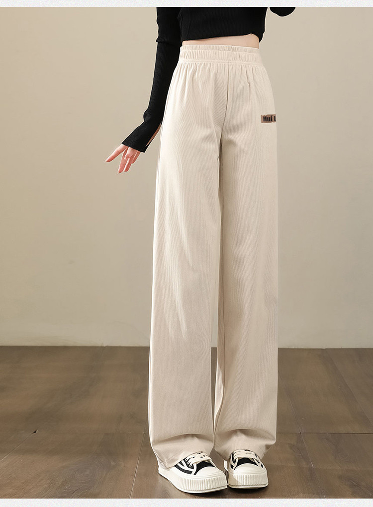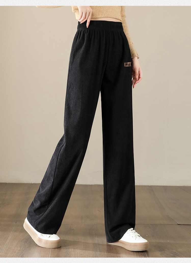简约风灯芯绒休闲裤女柔和亲肤阔腿裤女宽松显高显瘦百搭女休闲裤 928275