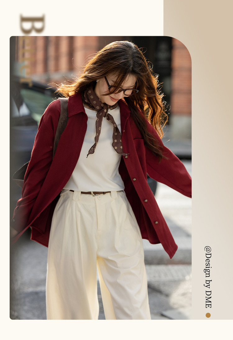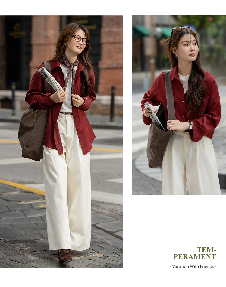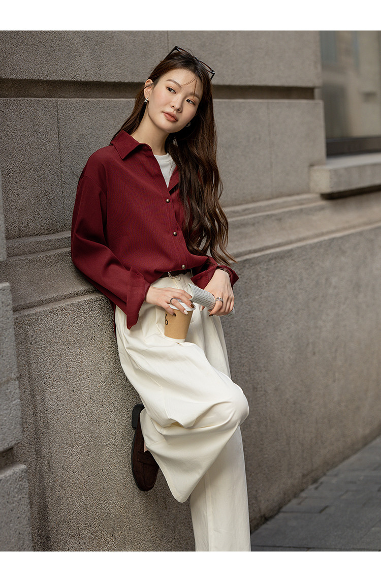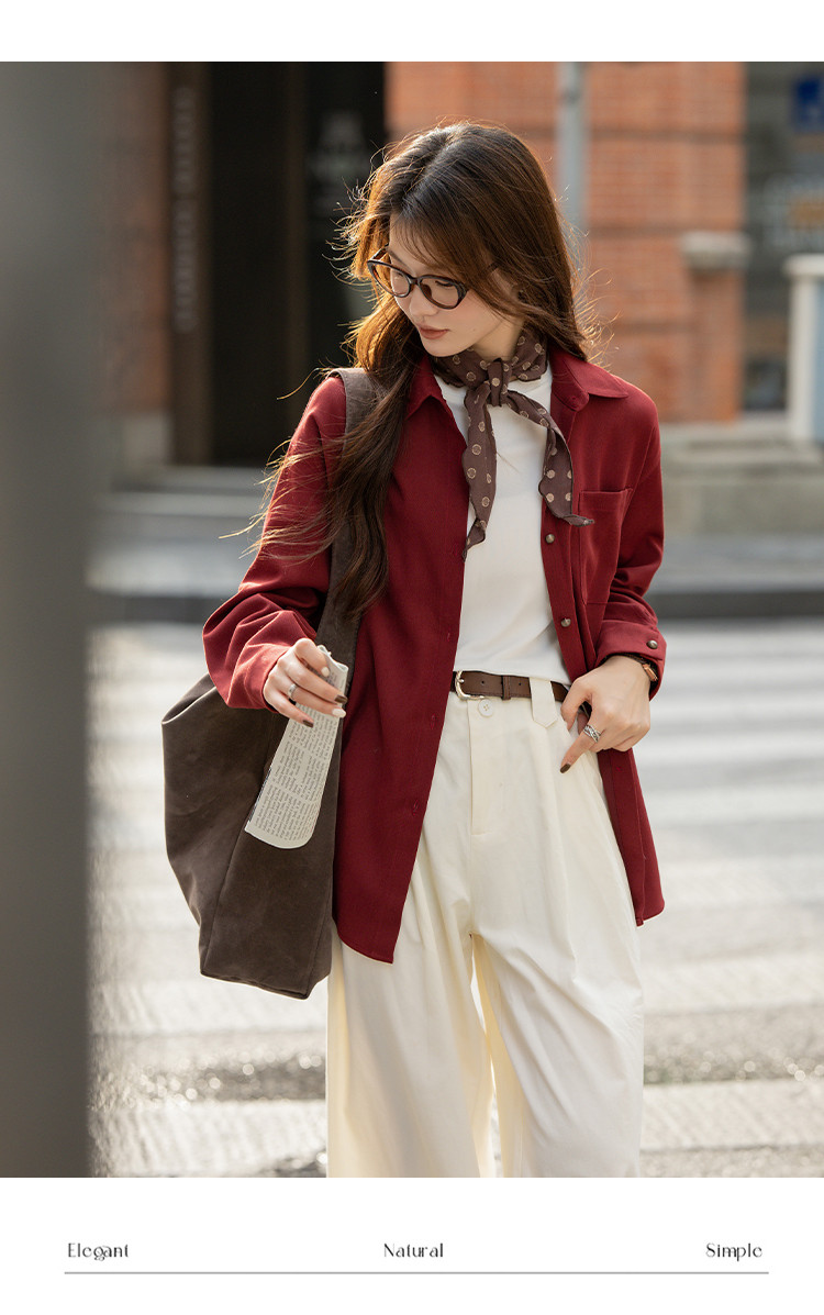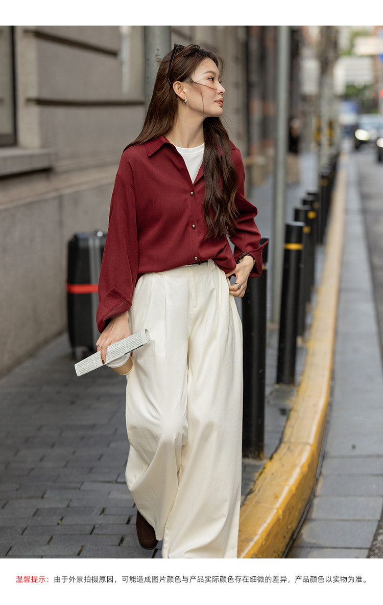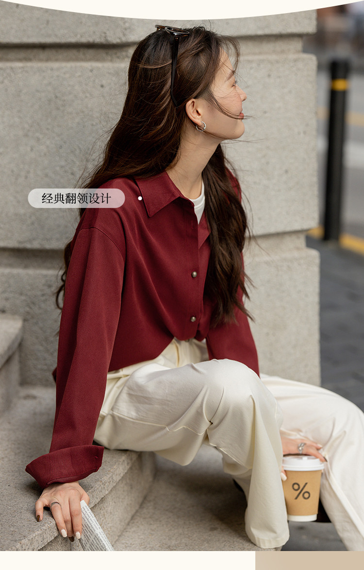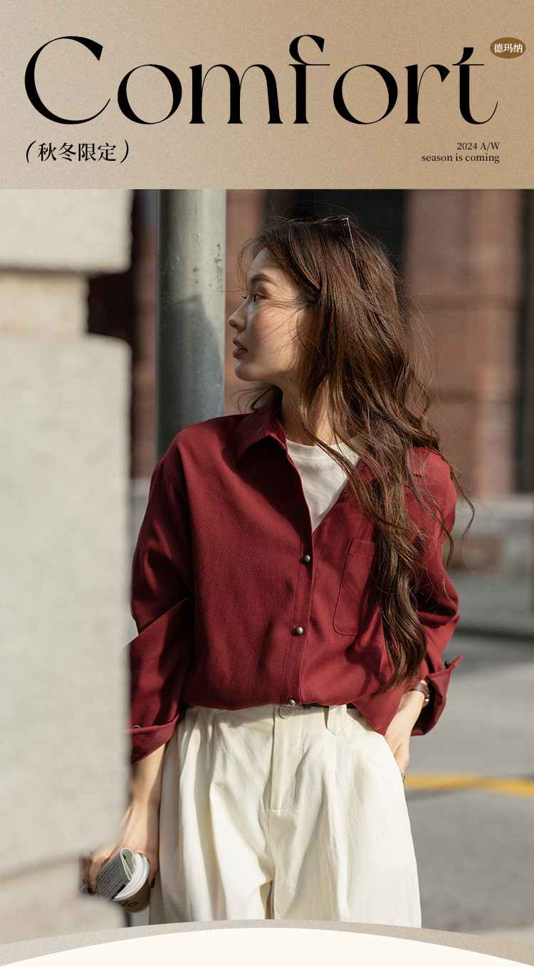 商品名称:【安可拉红】春秋复古港风磨毛高级感衬衣女时尚内搭叠穿女式衬衫 609921