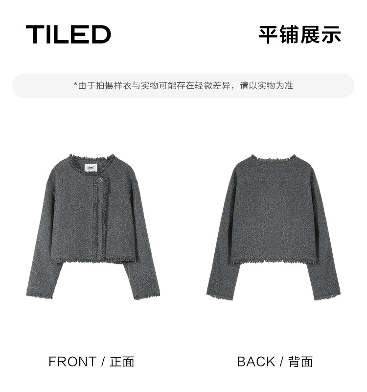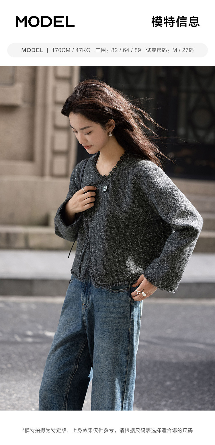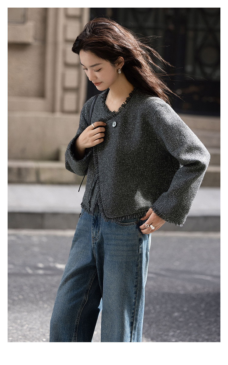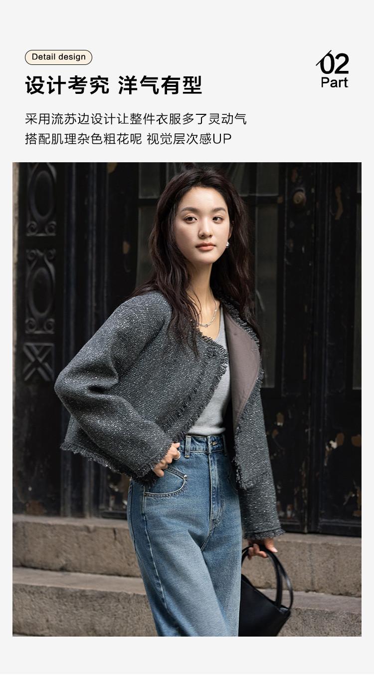 商品名称:【流苏小香外套】冬知性优雅日常通勤气质深灰色宽松上衣 914754