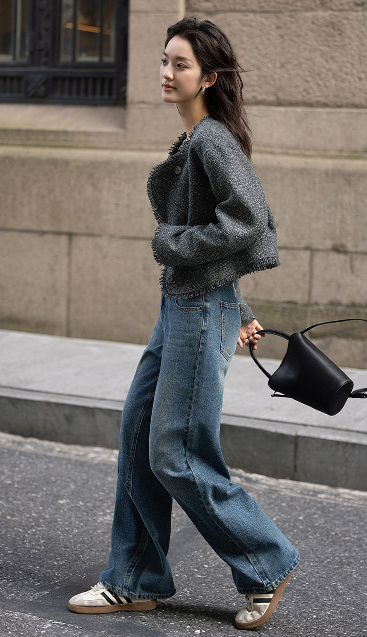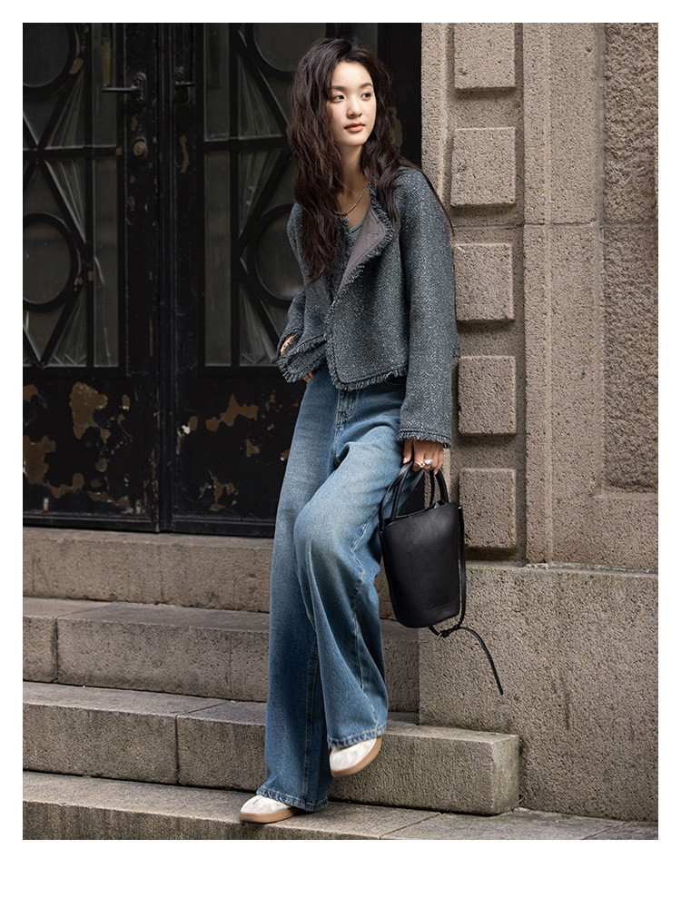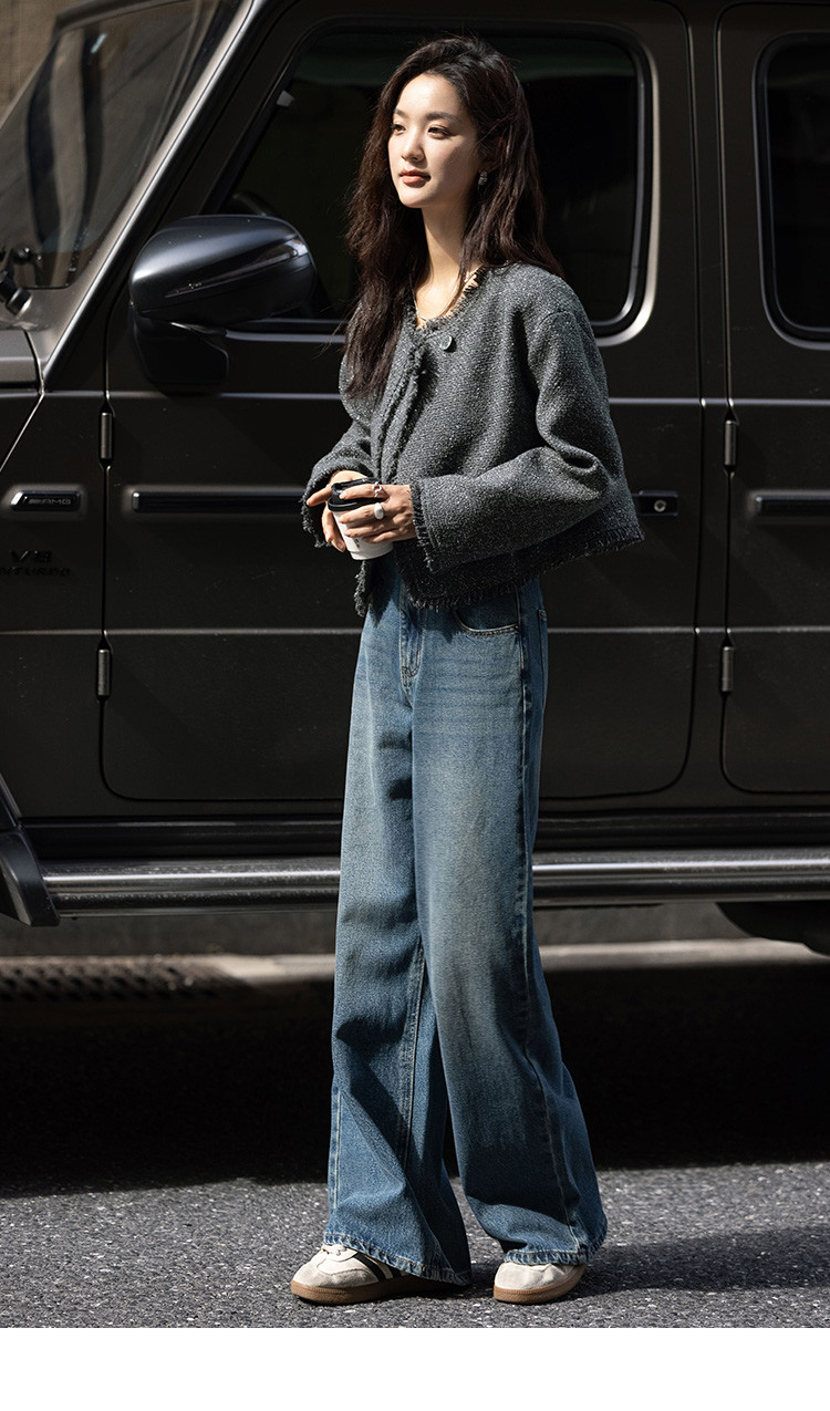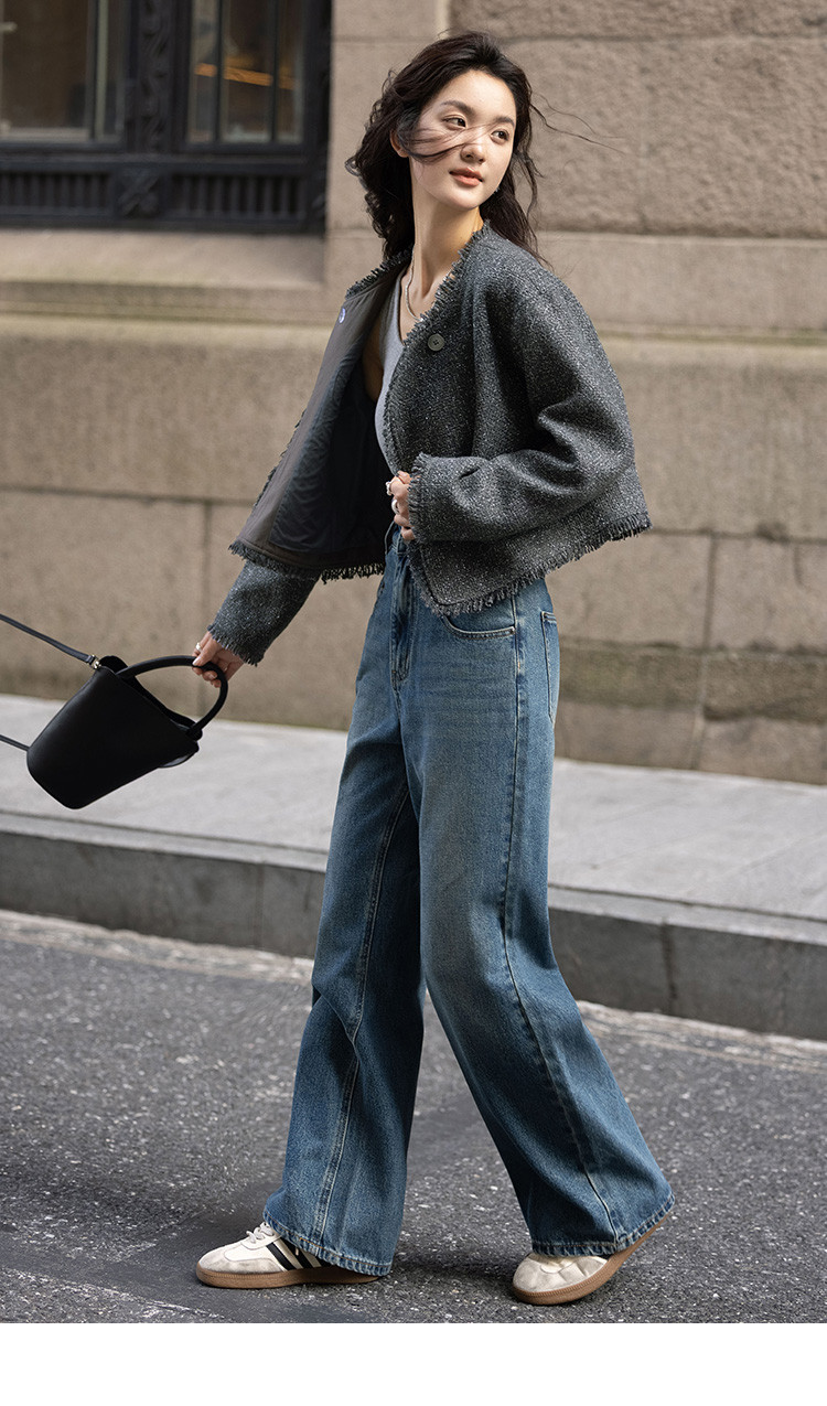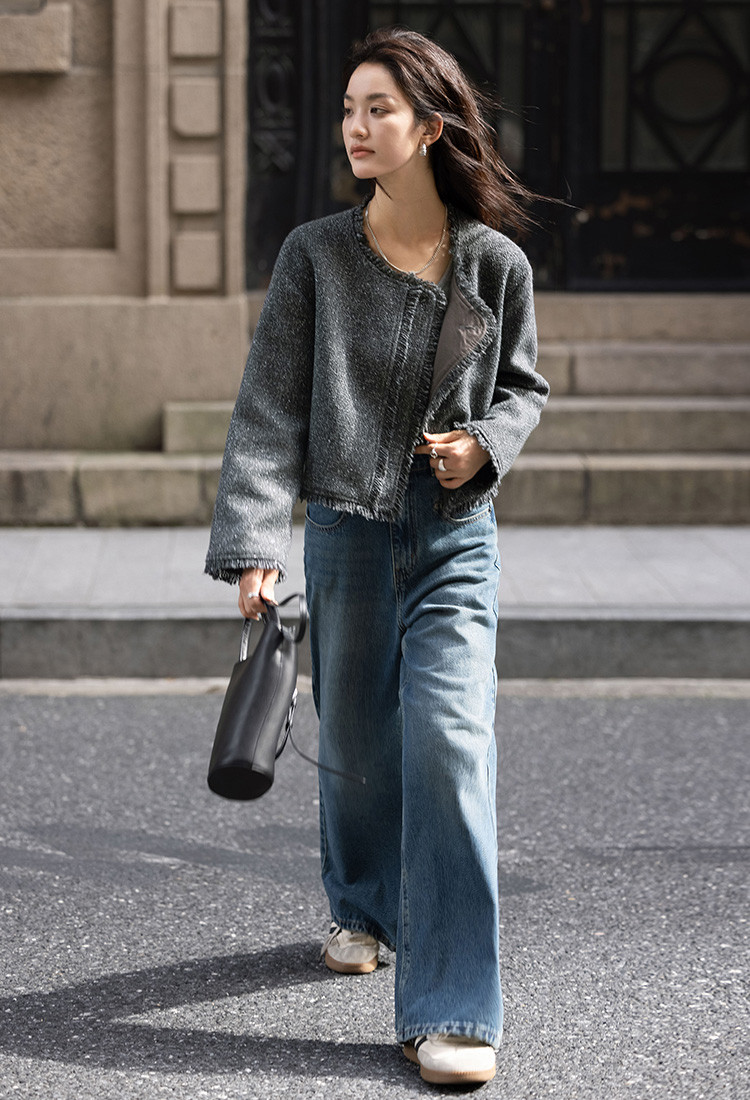 商品名称:【流苏小香外套】冬知性优雅日常通勤气质深灰色宽松上衣 914754