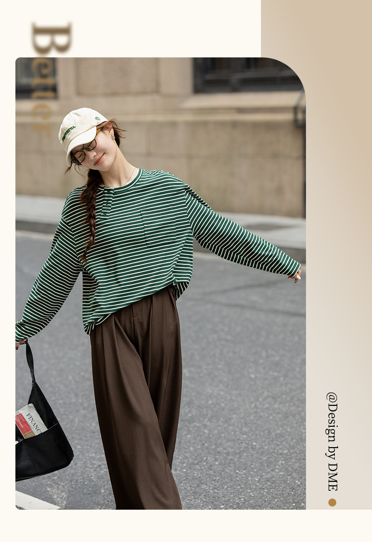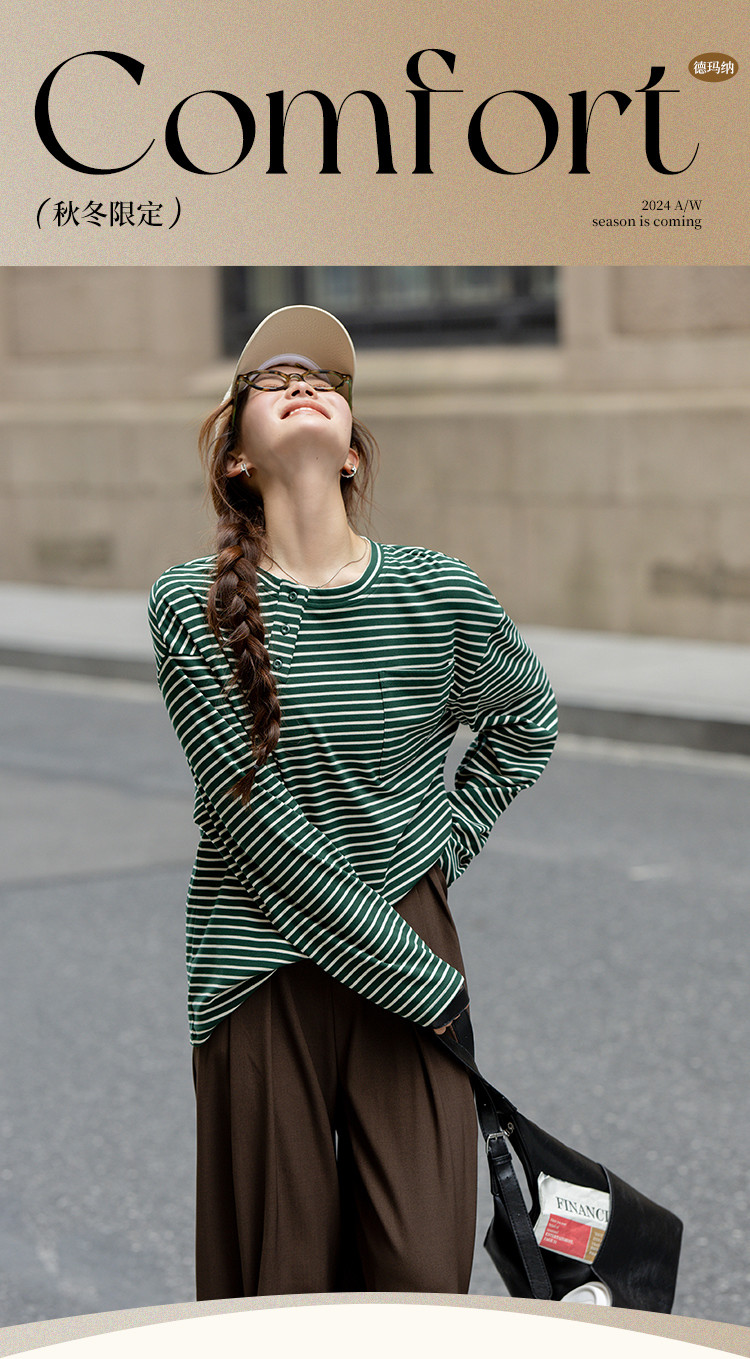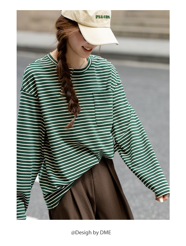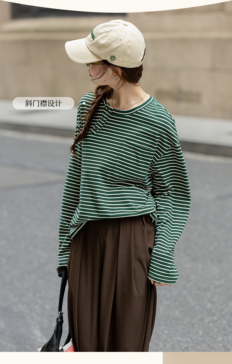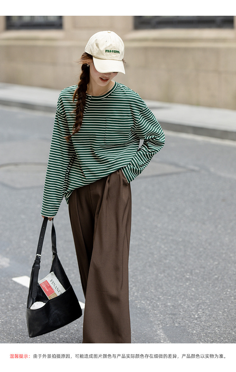 商品名称:【暖秋枫糖】春秋撞色条纹长袖T恤女小个子高级感减龄打底衫女 616513