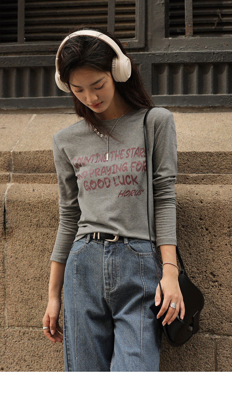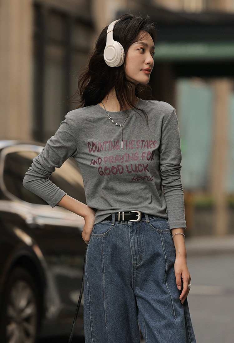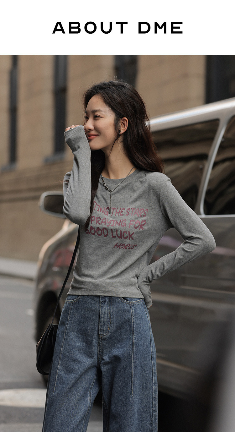 【简约派少女T恤】冬款撞色字母印花休闲基础内搭T恤女 360386