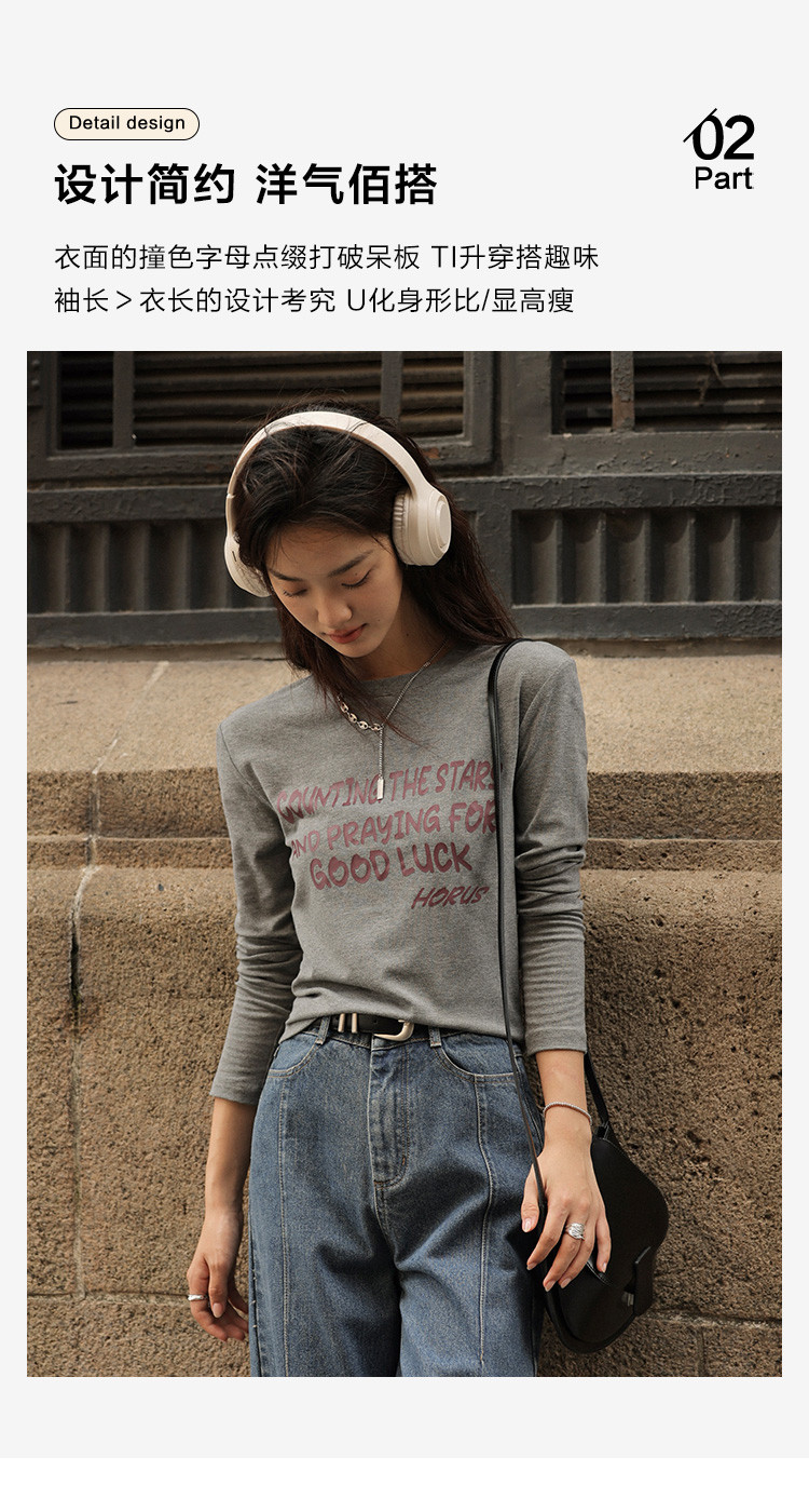 商品名称:【简约派少女T恤】冬款撞色字母印花休闲基础内搭T恤女 360386