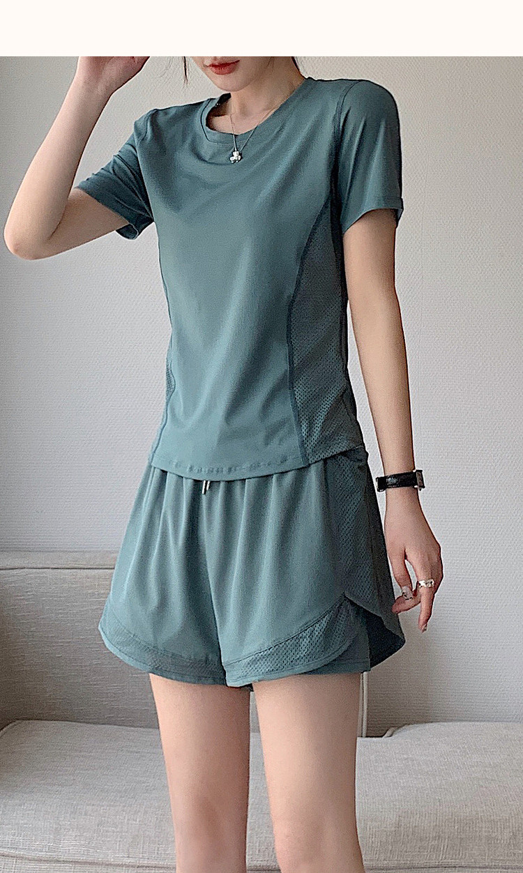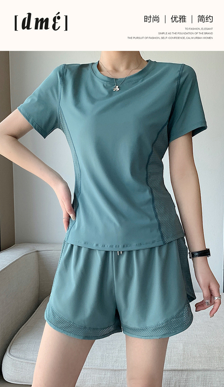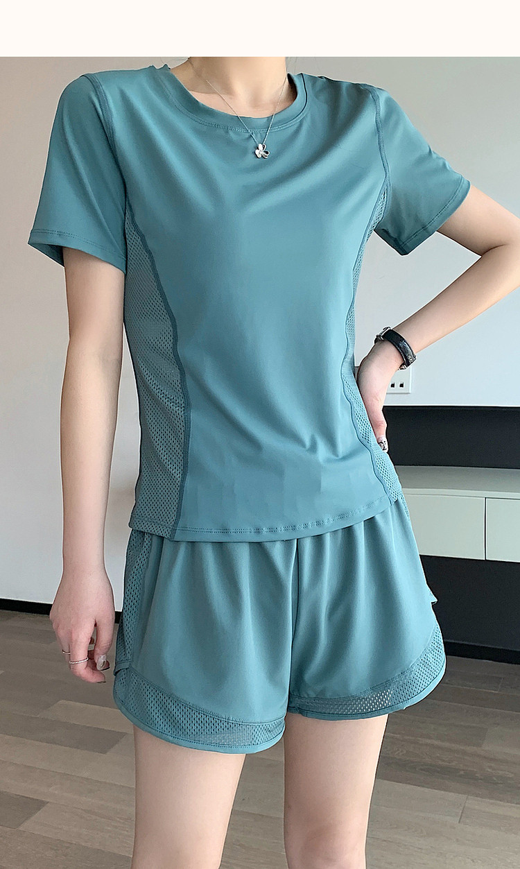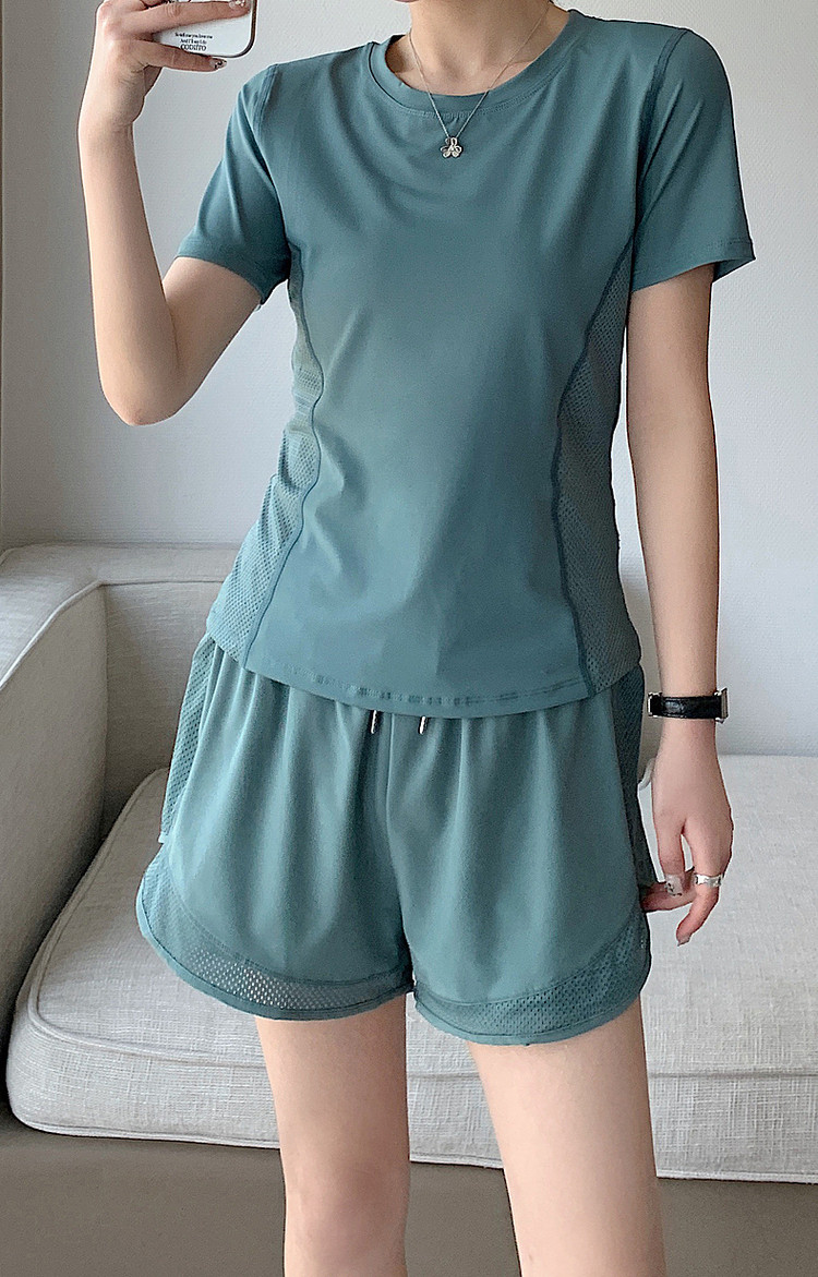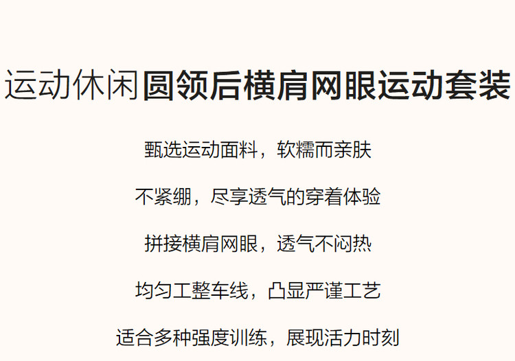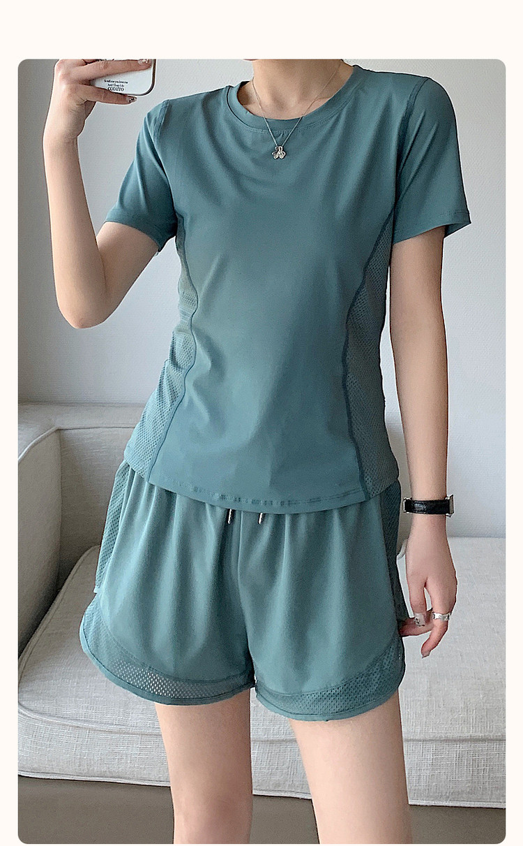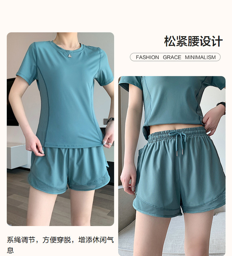商品名称:【奢享网眼运动套装】夏圆领修身上衣系绳短裤两件套 292033