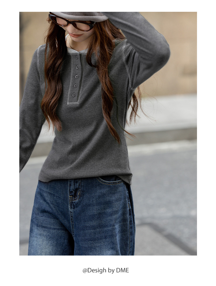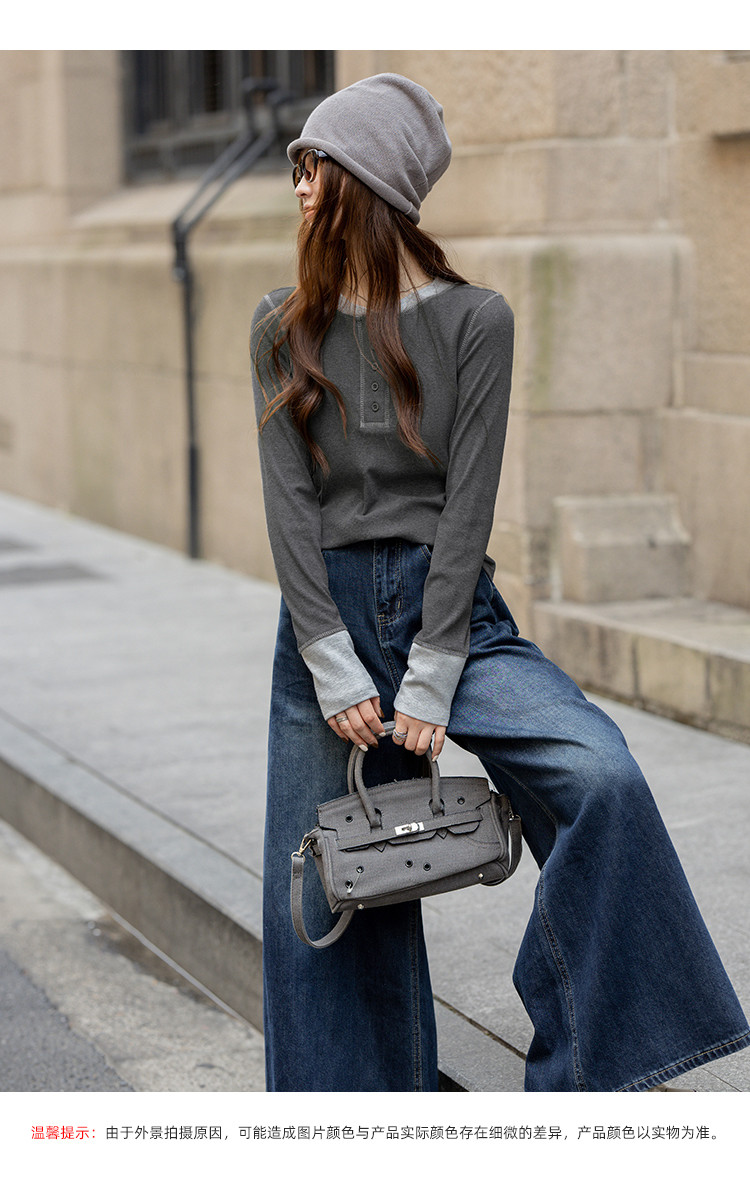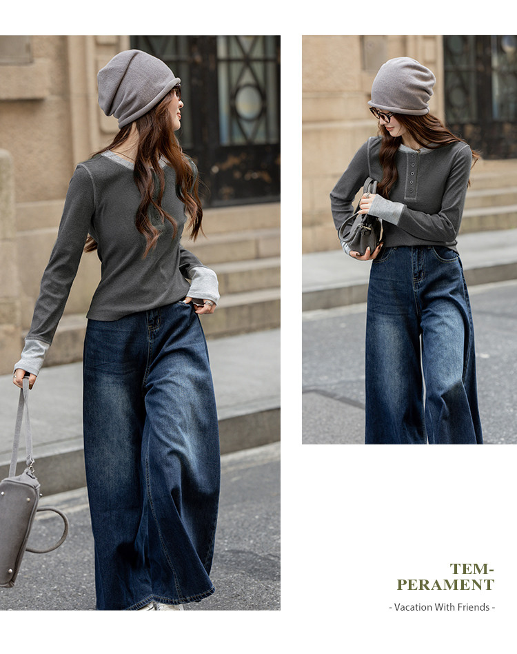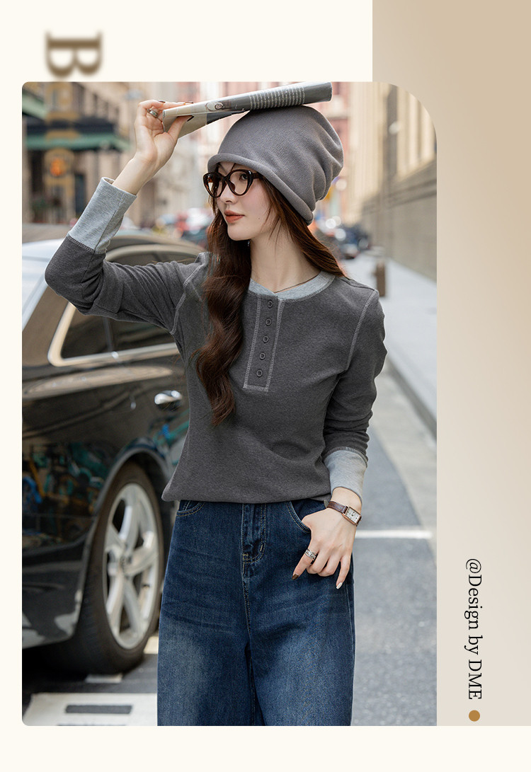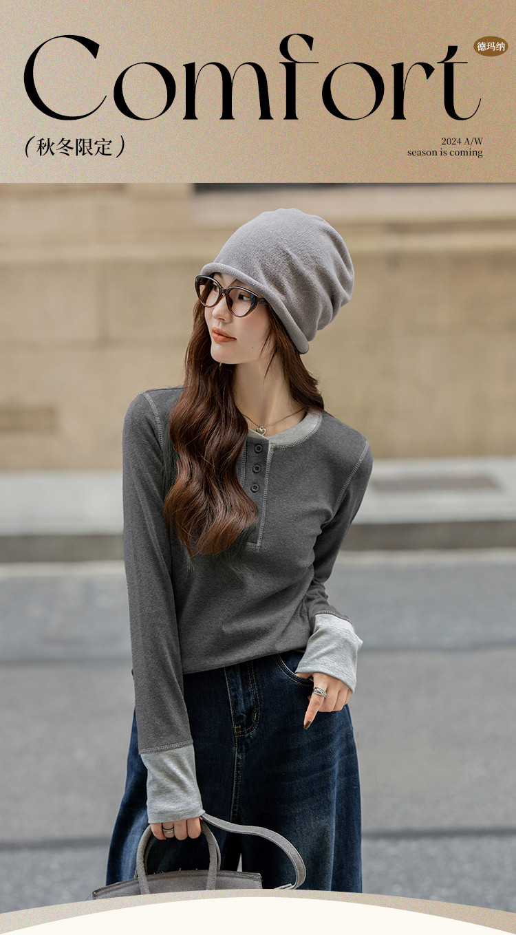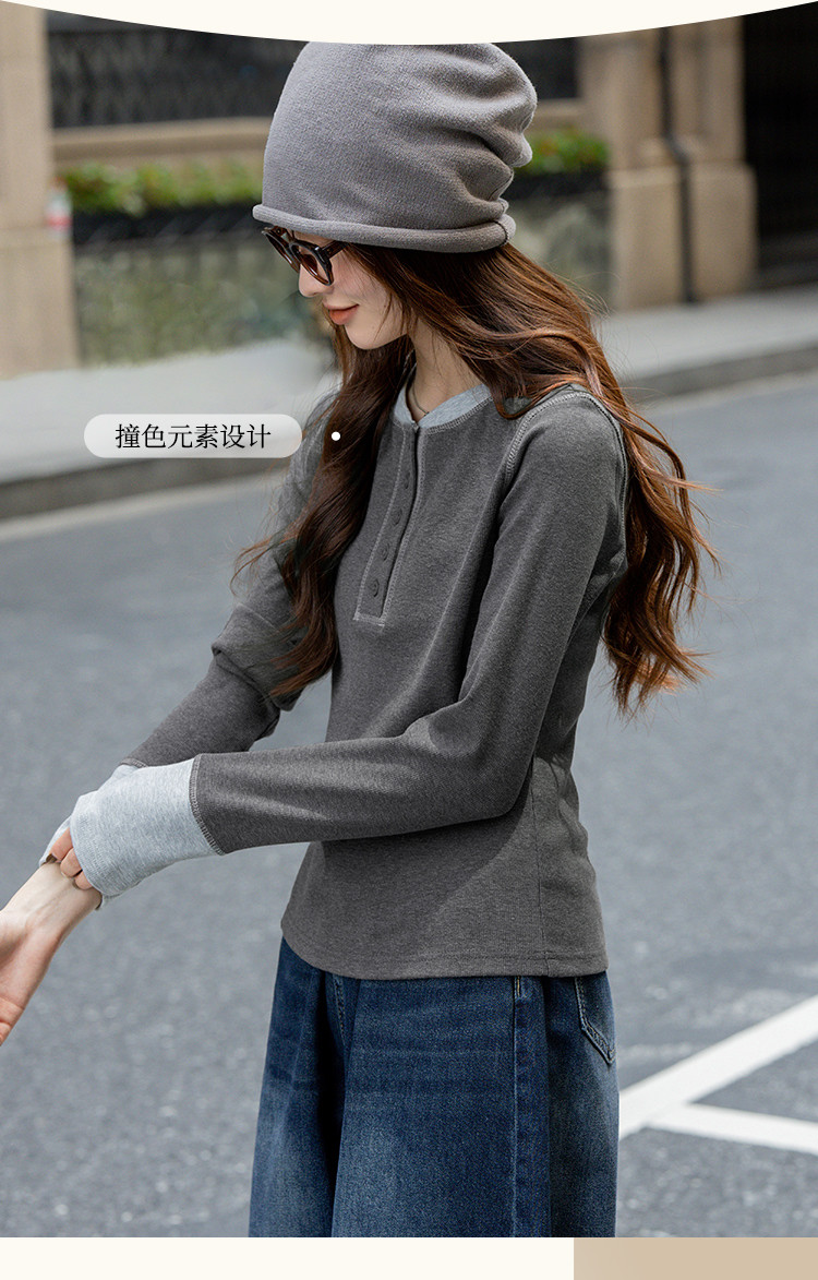 【舒适薄绒】秋冬加绒撞色打底衫女内搭显瘦高级感小个子长袖T恤 620609