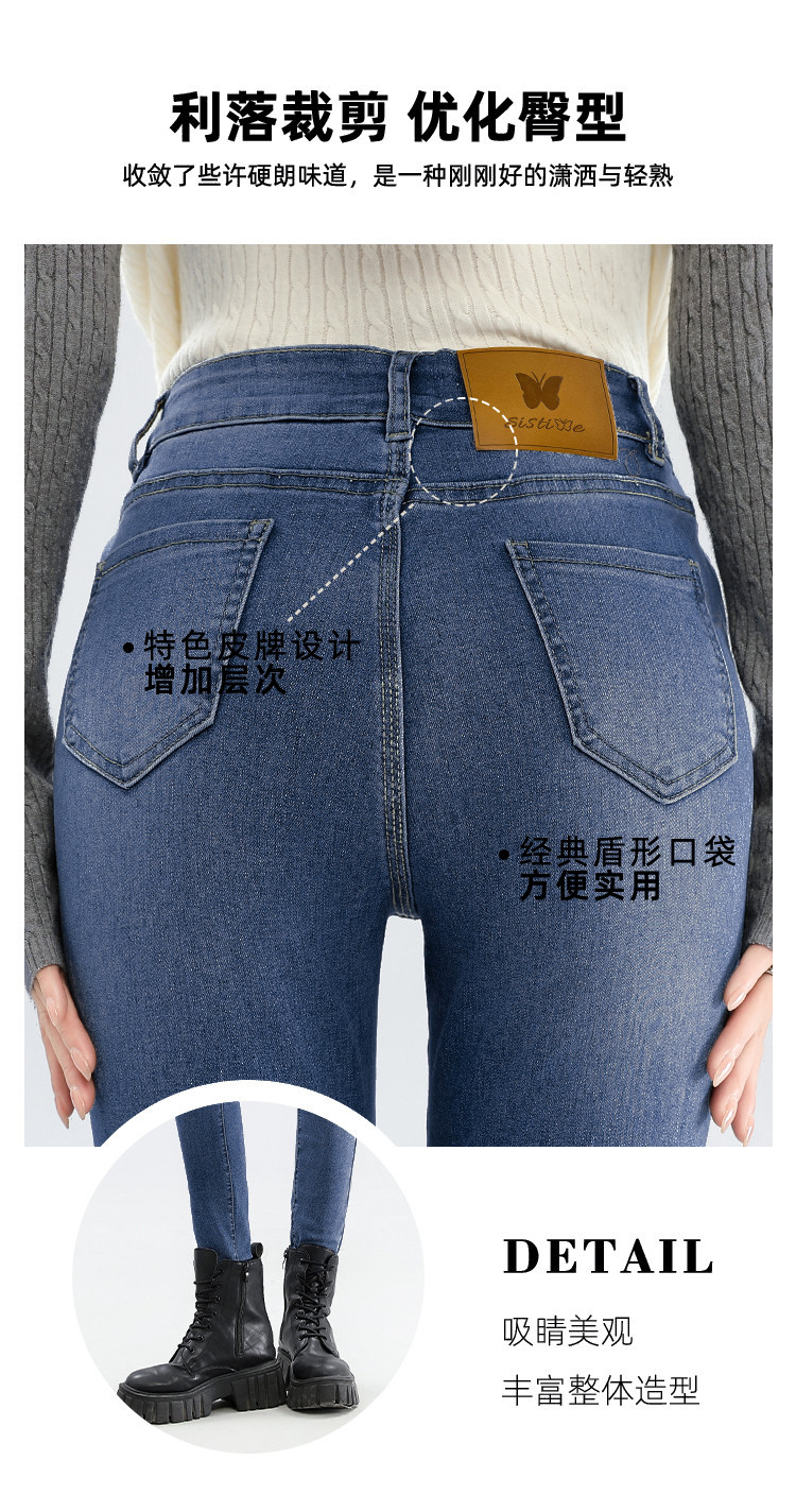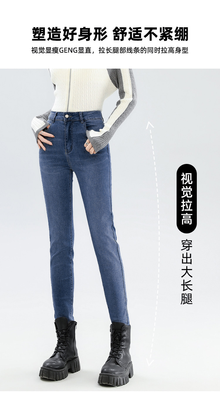商品名称:高腰牛仔裤女款简约百搭铅笔裤时尚显瘦显腿长小脚裤 365016