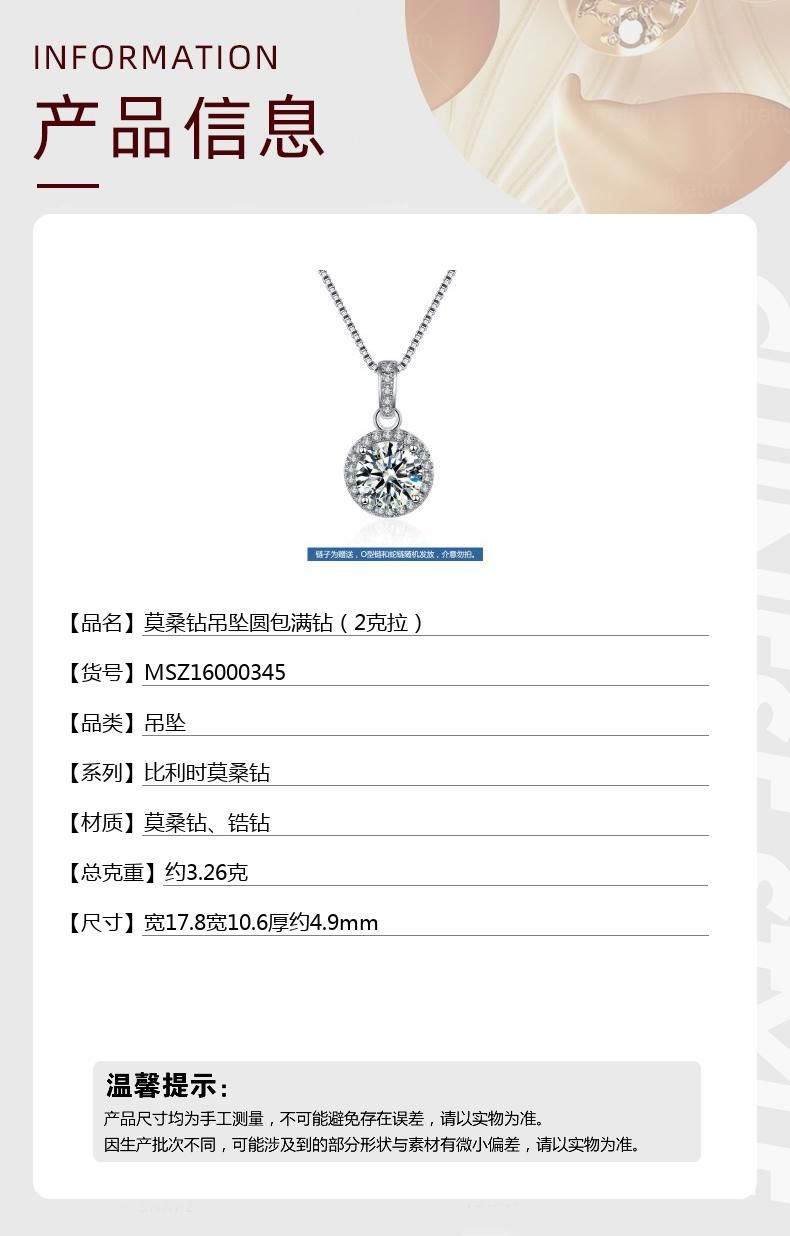 商品名称:香港周六福 莫桑钻吊坠圆包满钻(2克拉) 配项链