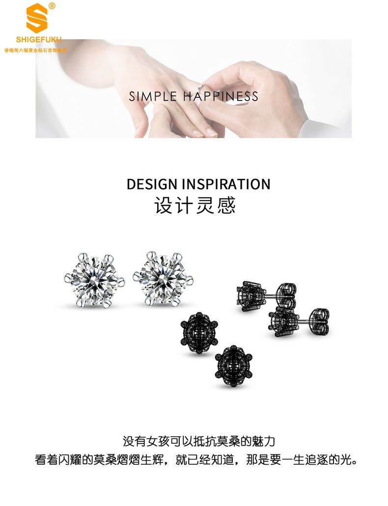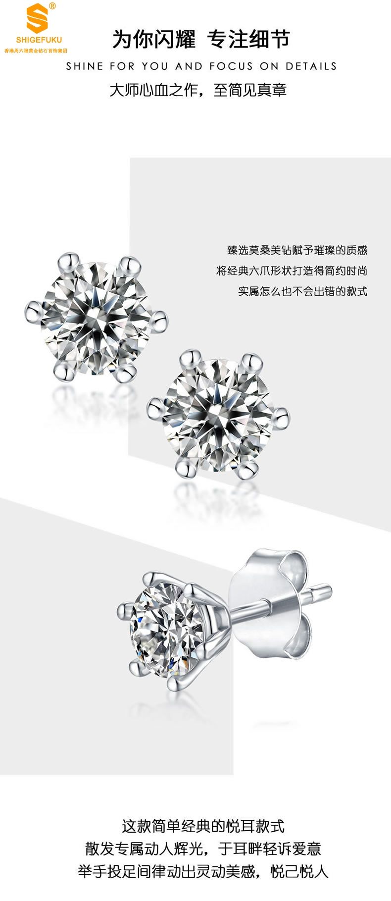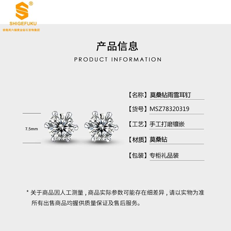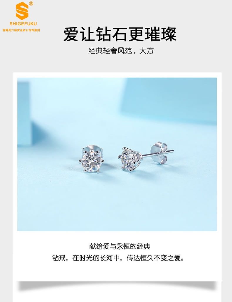 商品名称:香港周六福 比利时莫桑钻雨雪耳钉