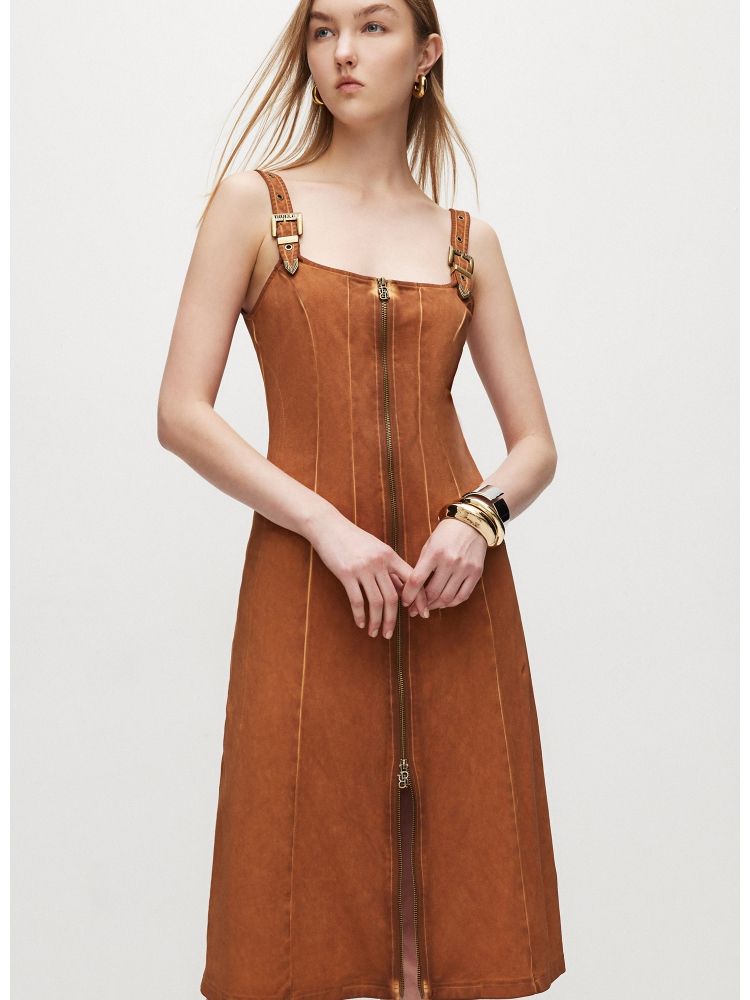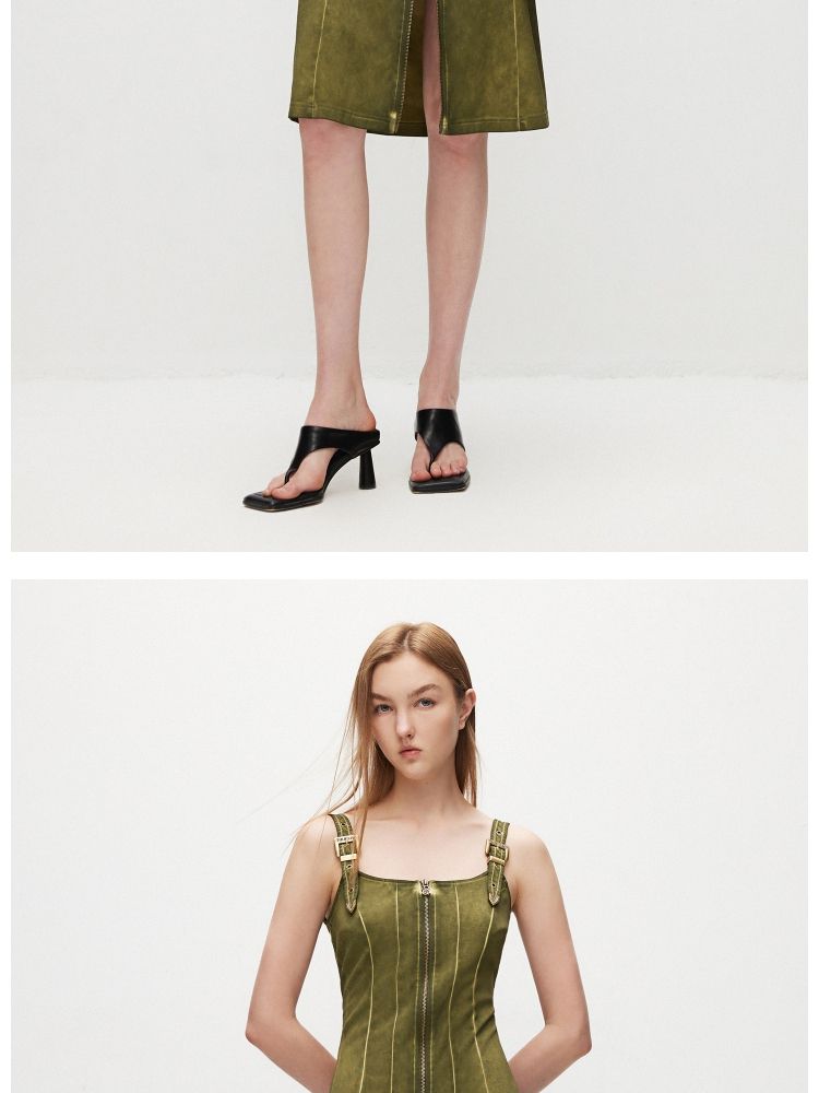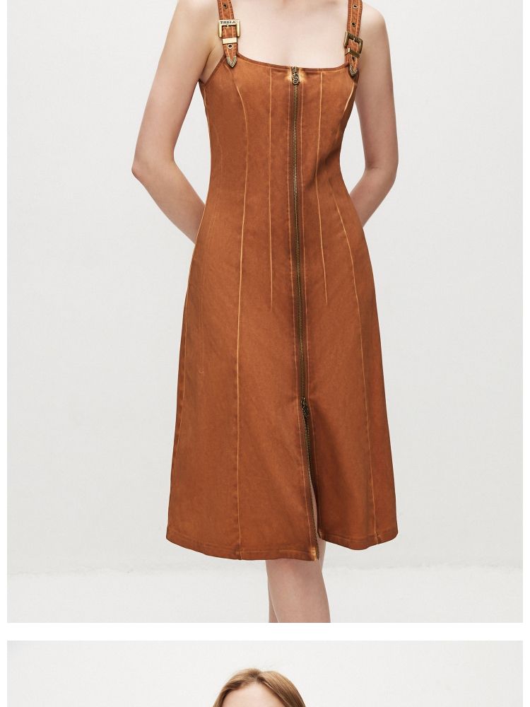 商品名称:【复古风】 夏季U型领中长款修身吊带连衣裙女 249114
