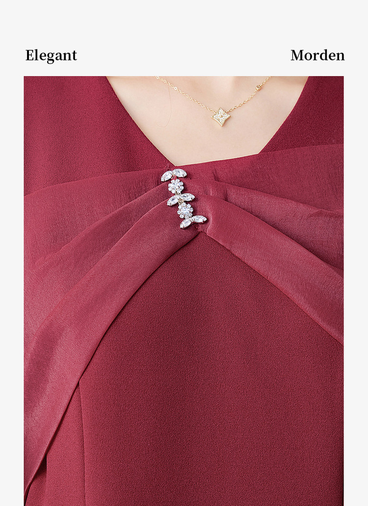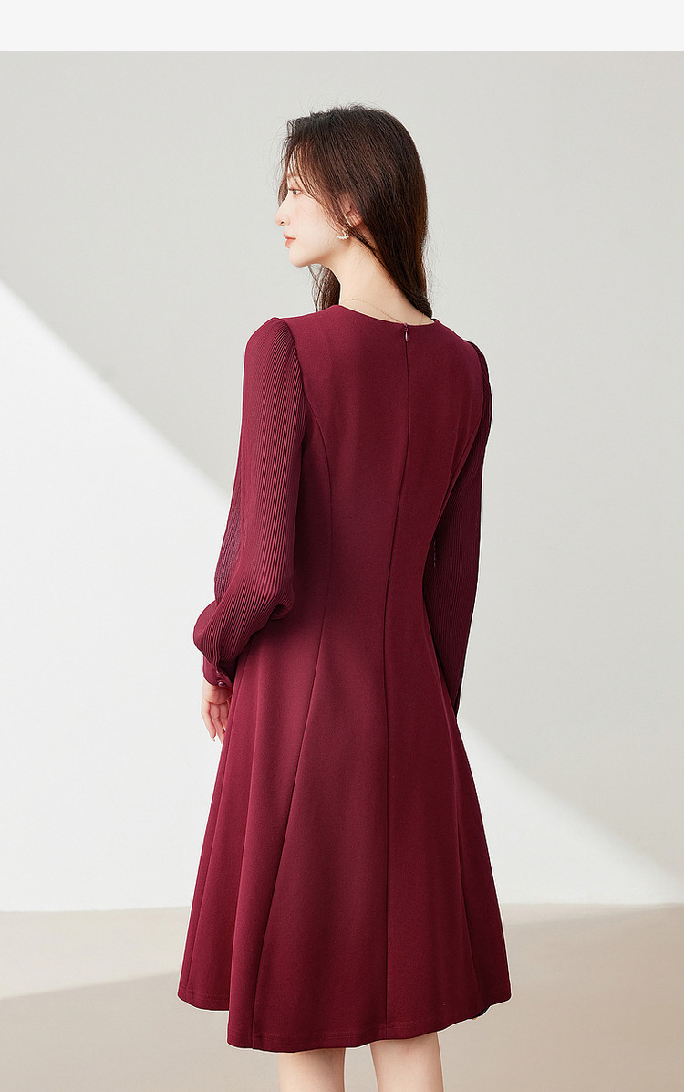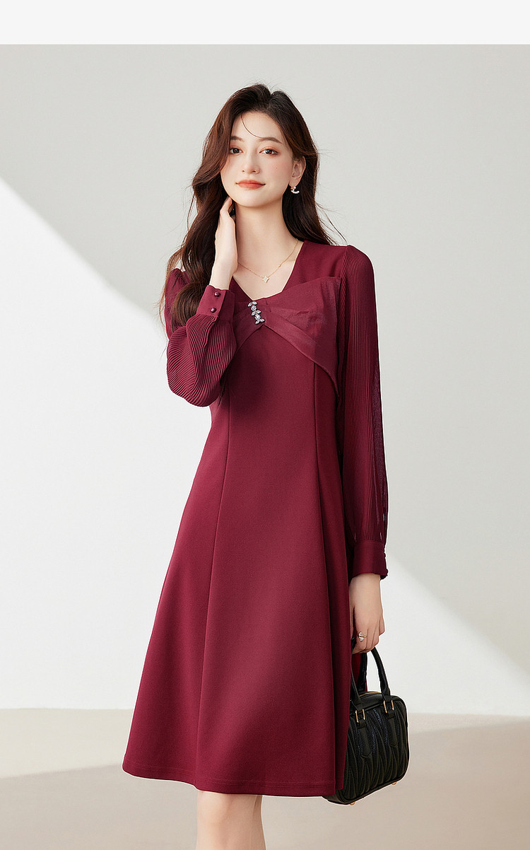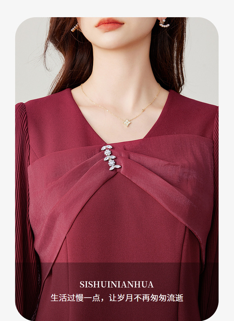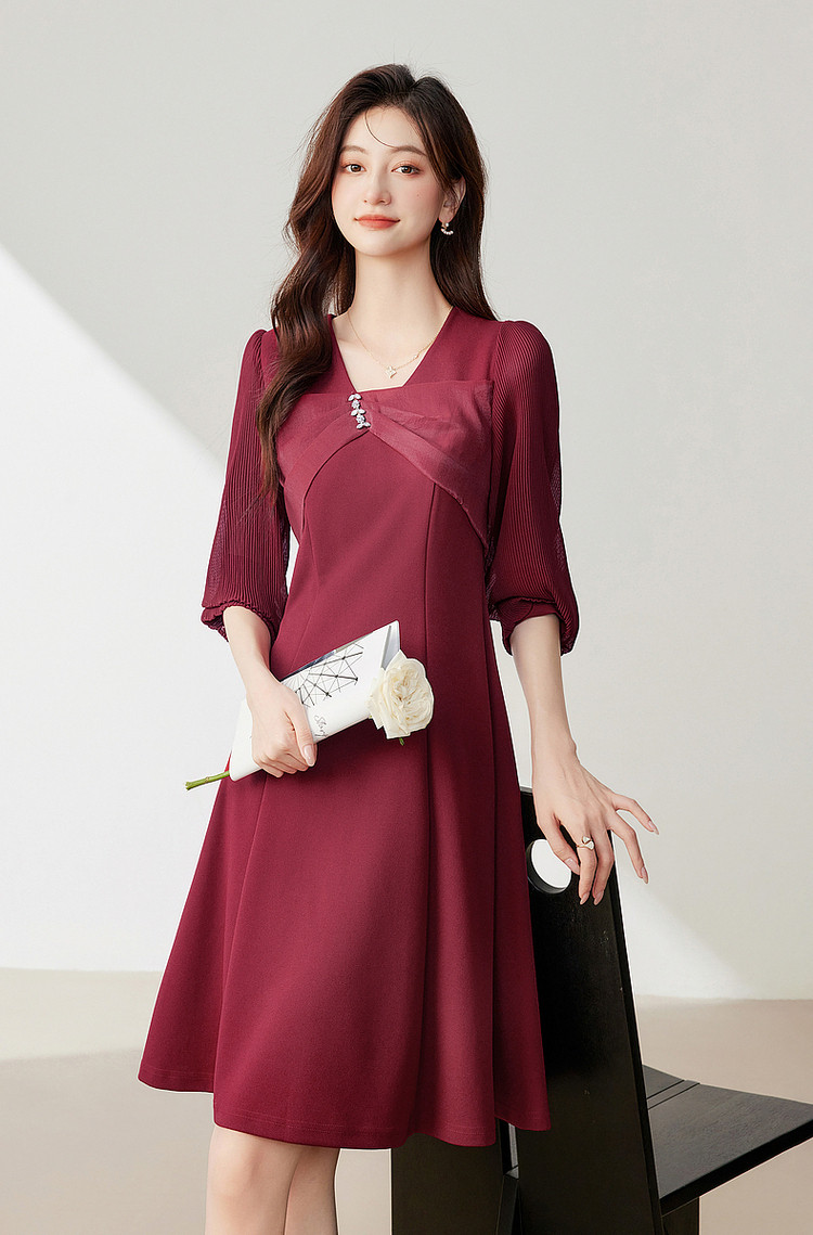 商品名称:法式复古连衣裙气质名媛高级感修身显瘦蝴蝶结V领裙 071896