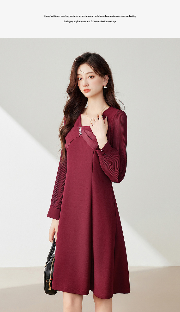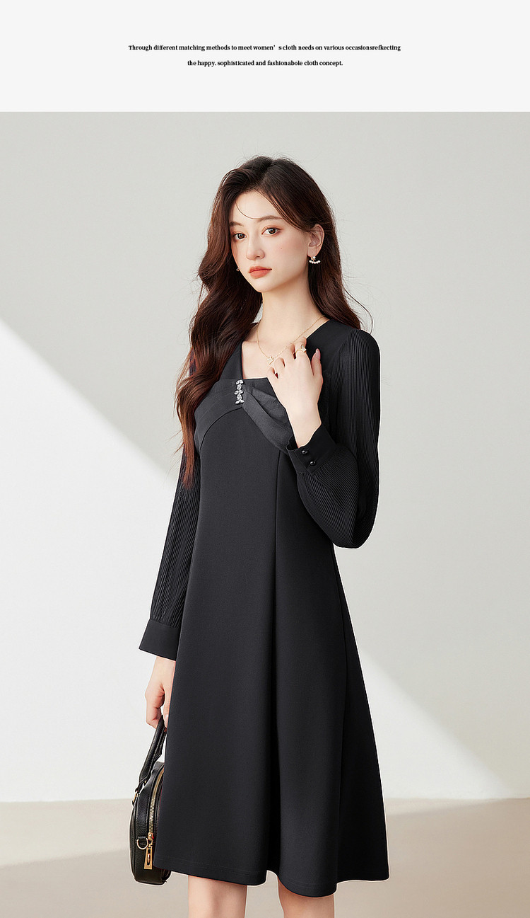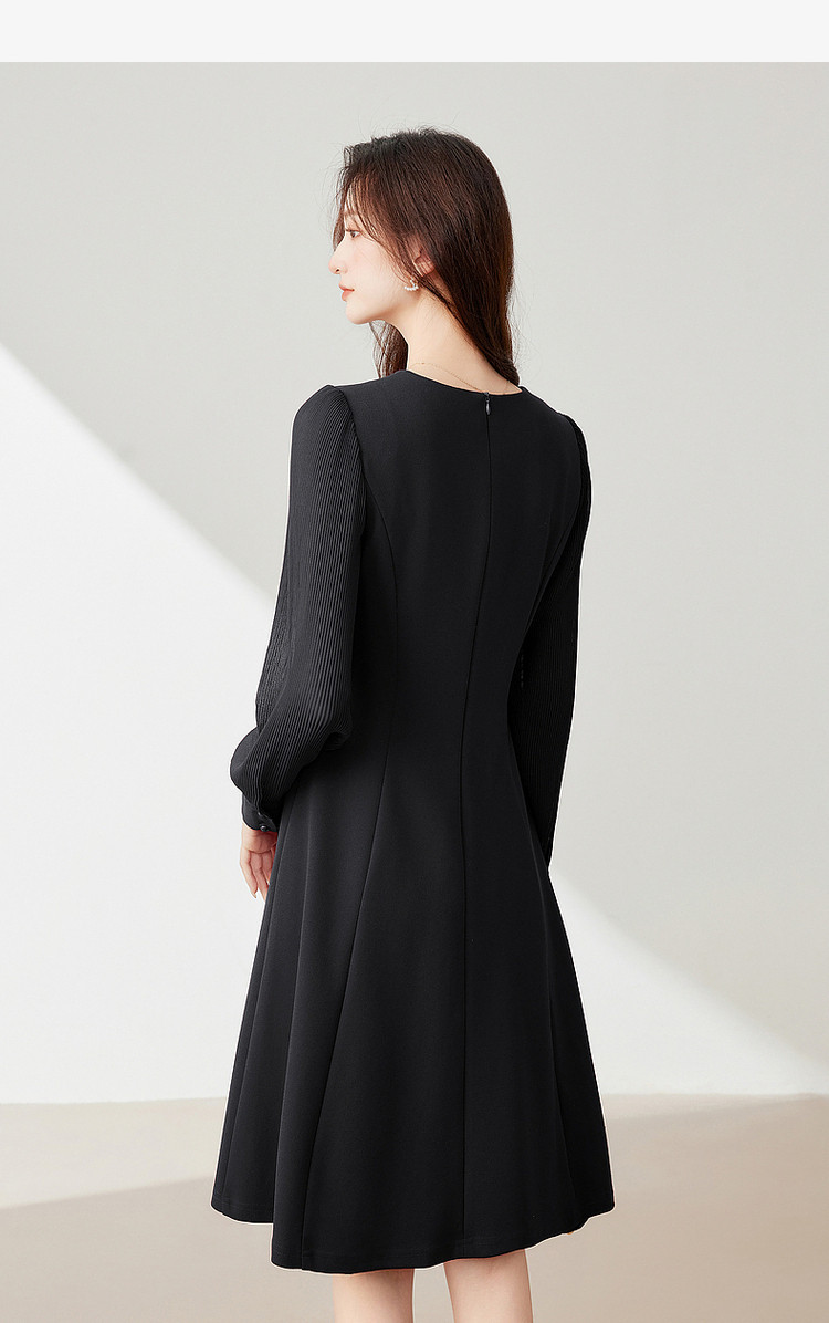 法式复古连衣裙气质名媛高级感修身显瘦蝴蝶结V领裙 071896