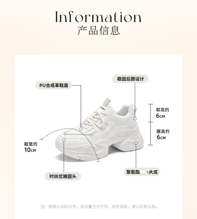 商品名称:春秋厚底增高显瘦老爹鞋纯色休闲运动百搭小白鞋小个子气质女鞋 768666