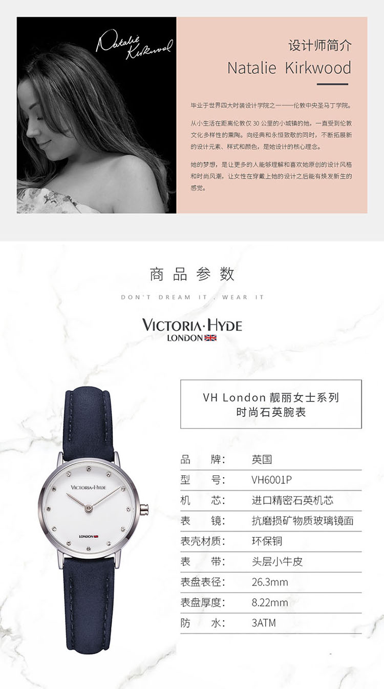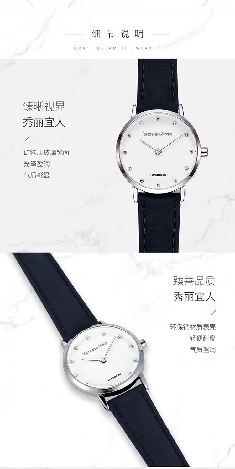 商品名称:Victoria.Hyde/维多利亚海德 简约英伦石英女士腕表 真皮表带女表26mm