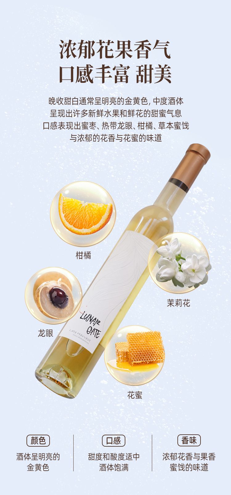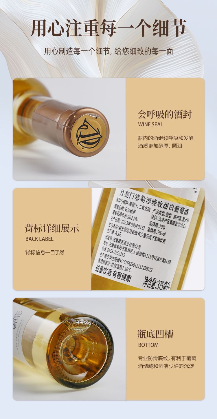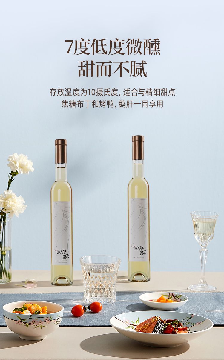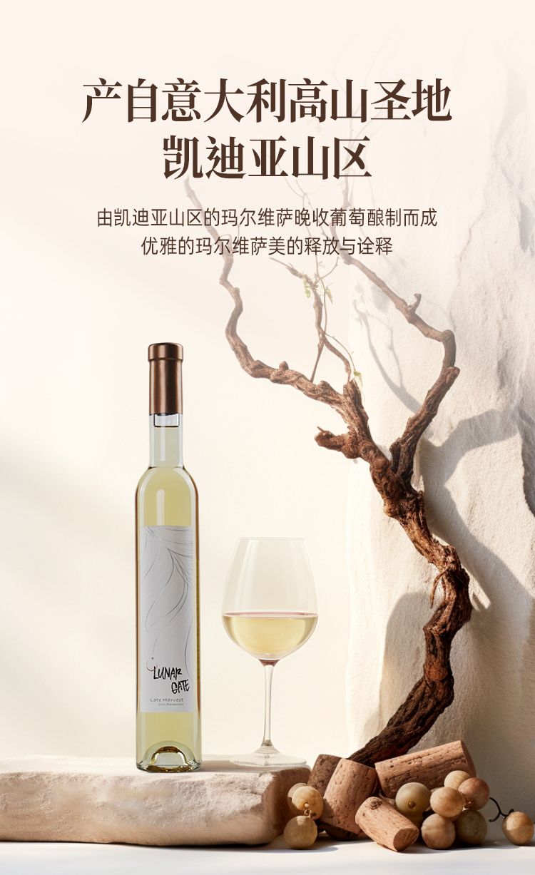 商品名称:意大利DOC级别月亮门塞勒涅晚收甜白葡萄酒375ml*2瓶 送香槟杯+开瓶器