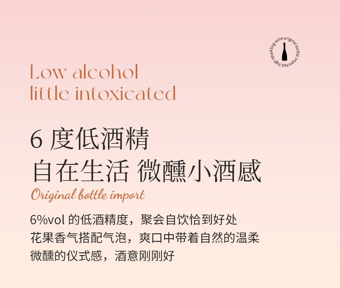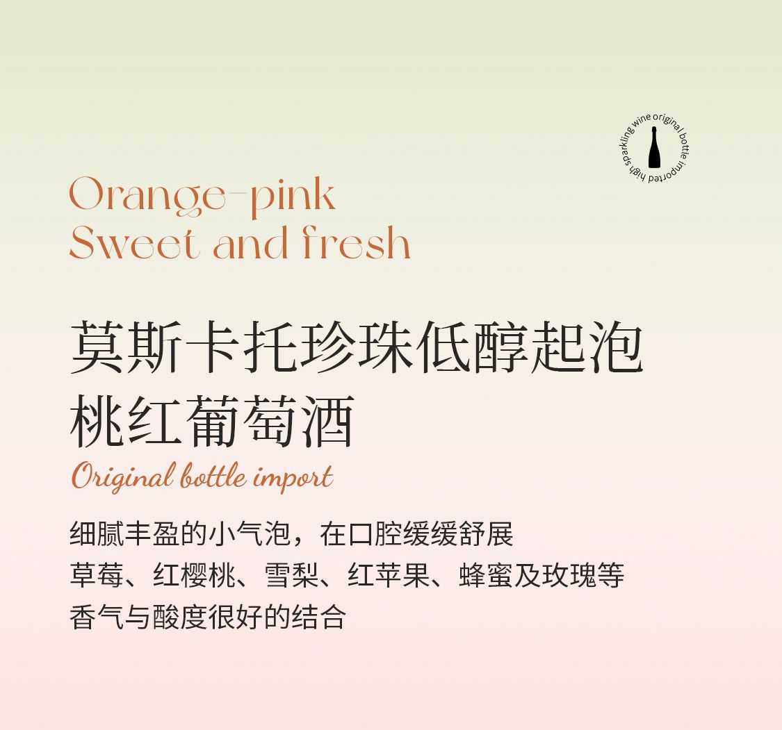 意大利进口月亮门莫斯卡托珍珠低醇甜白桃红起泡酒750ml*2瓶 送香槟杯