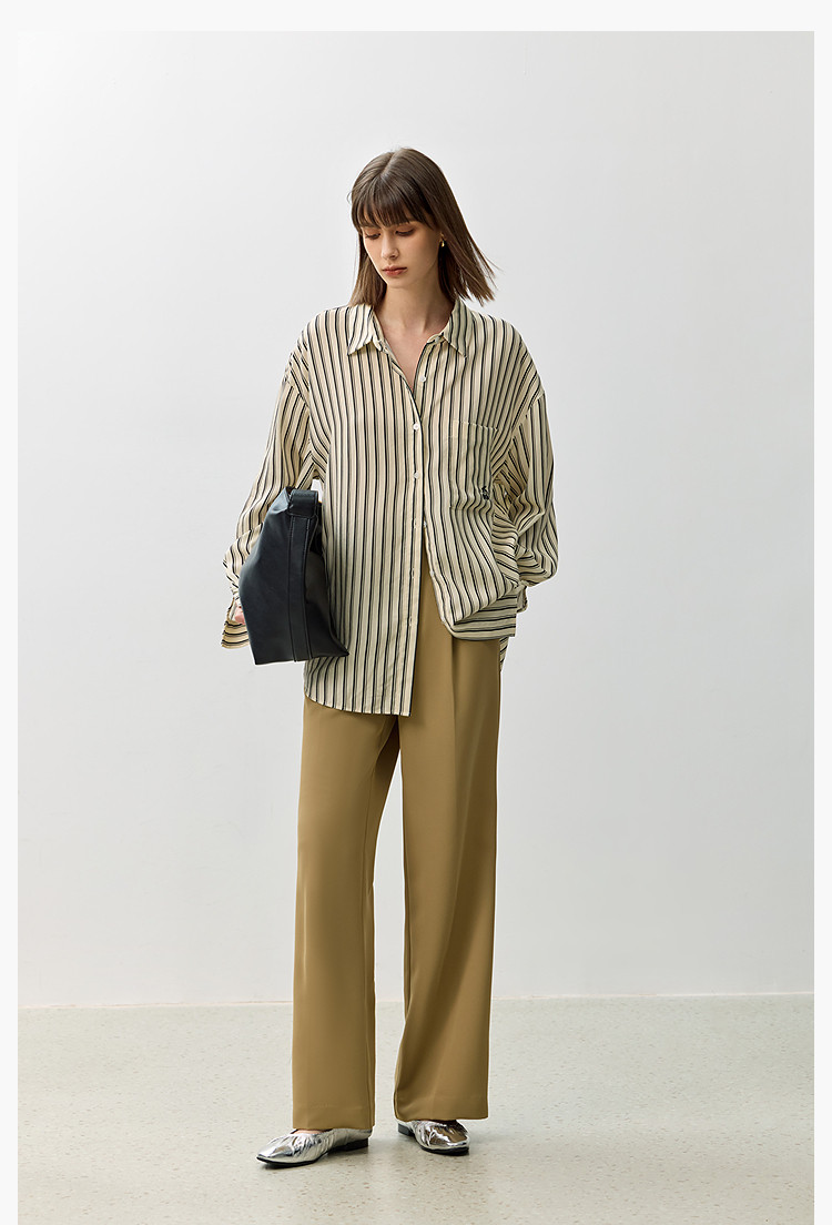 裤子女春季款时尚百搭设计感微阔高腰直筒拖地裤西装休闲裤女 334107