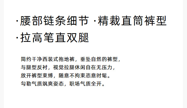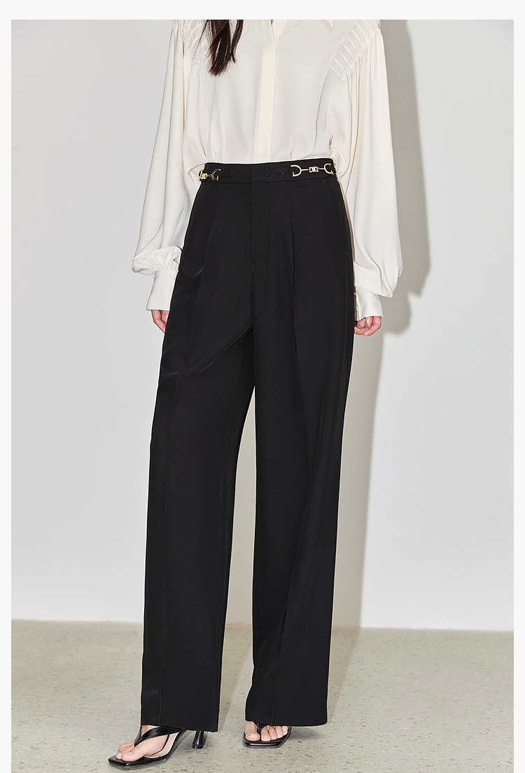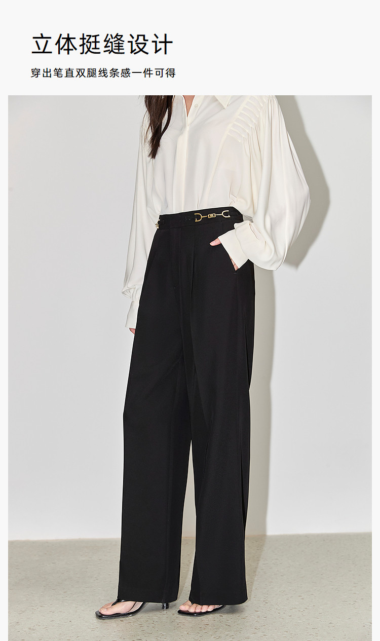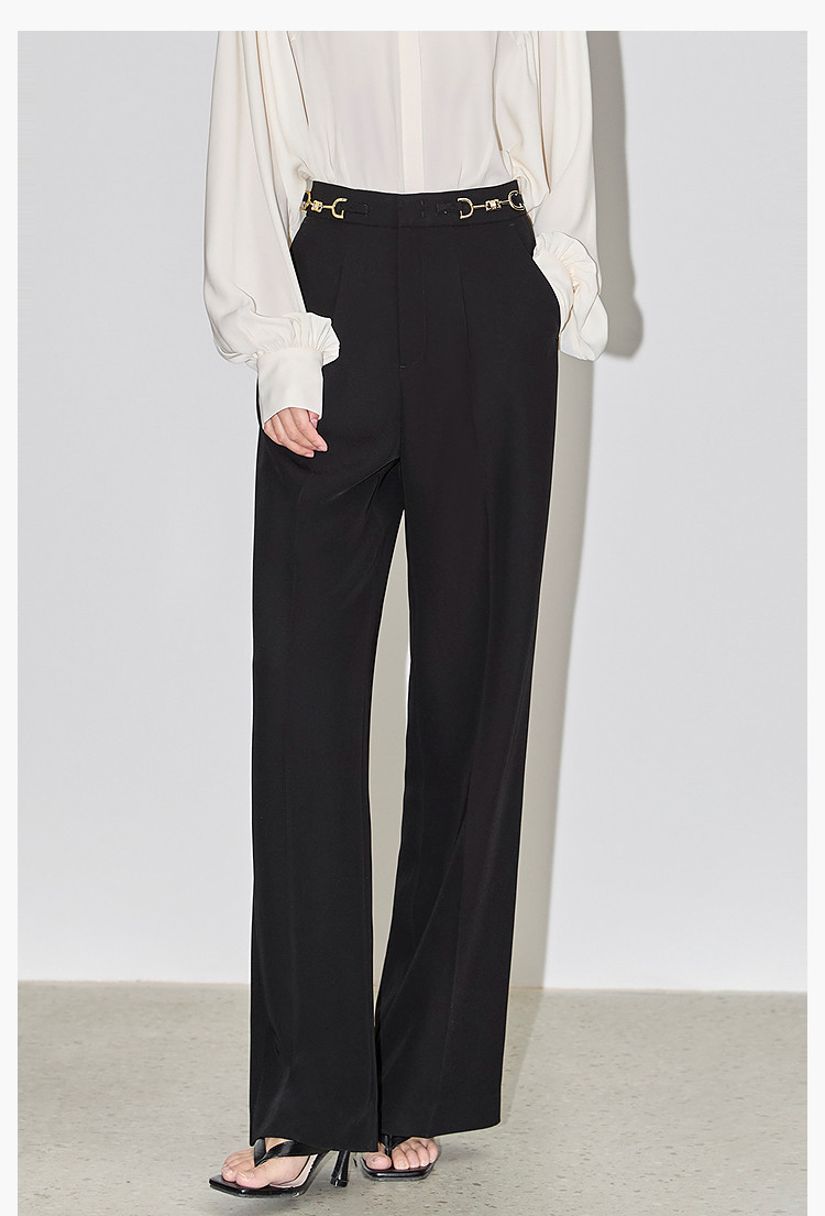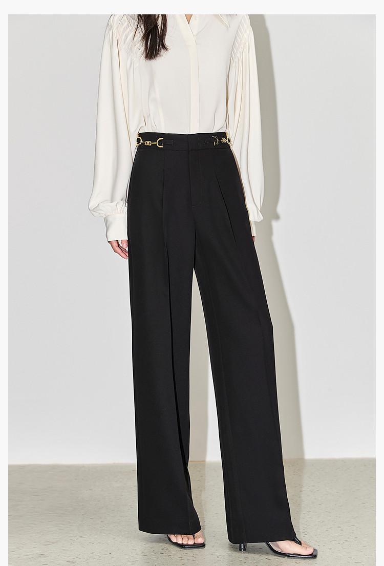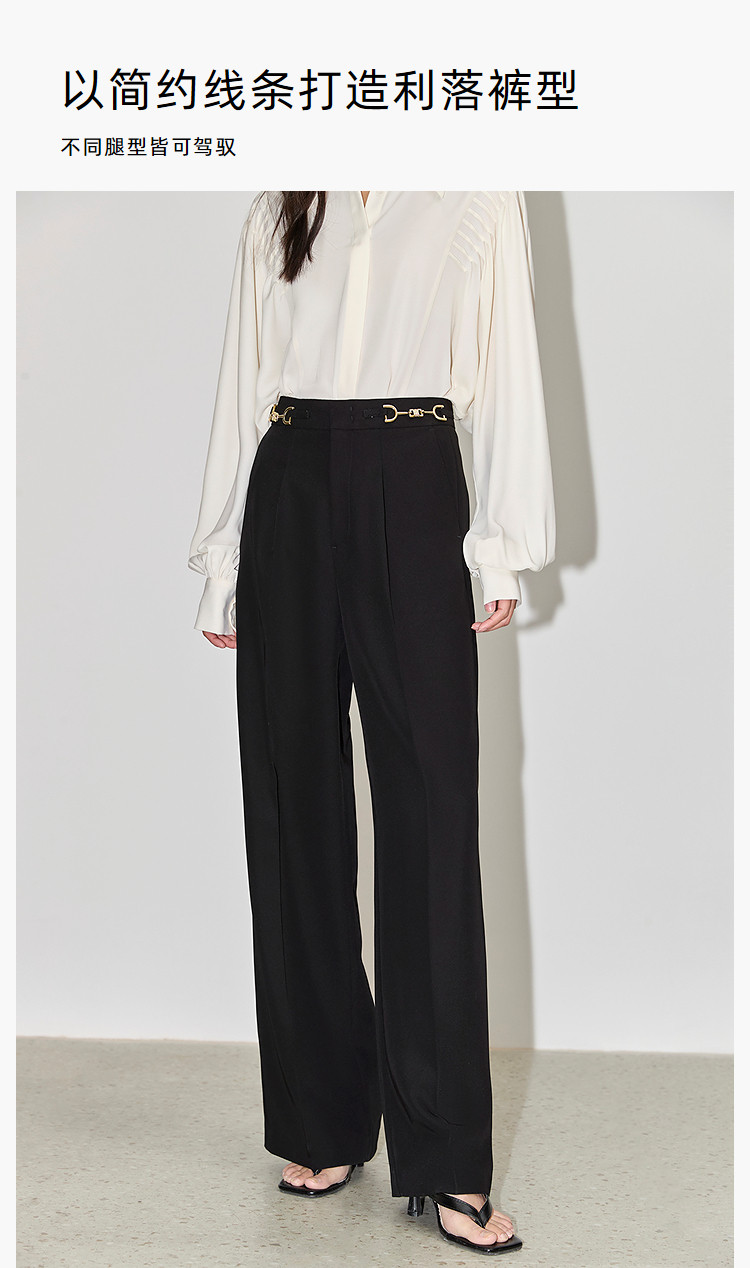 商品名称:裤子女春季款时尚百搭设计感微阔高腰直筒拖地裤西装休闲裤女 334107