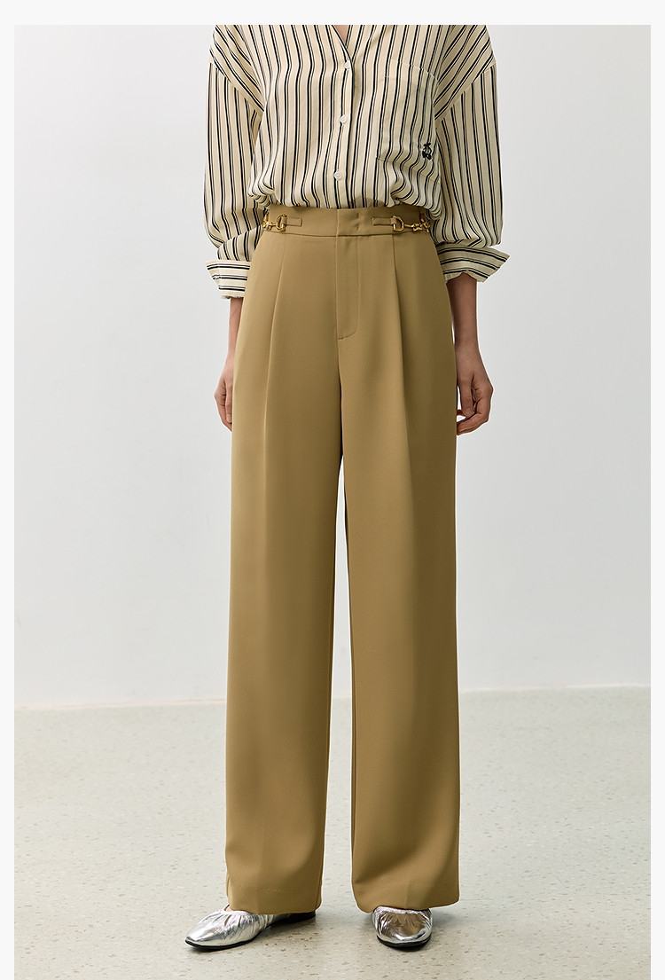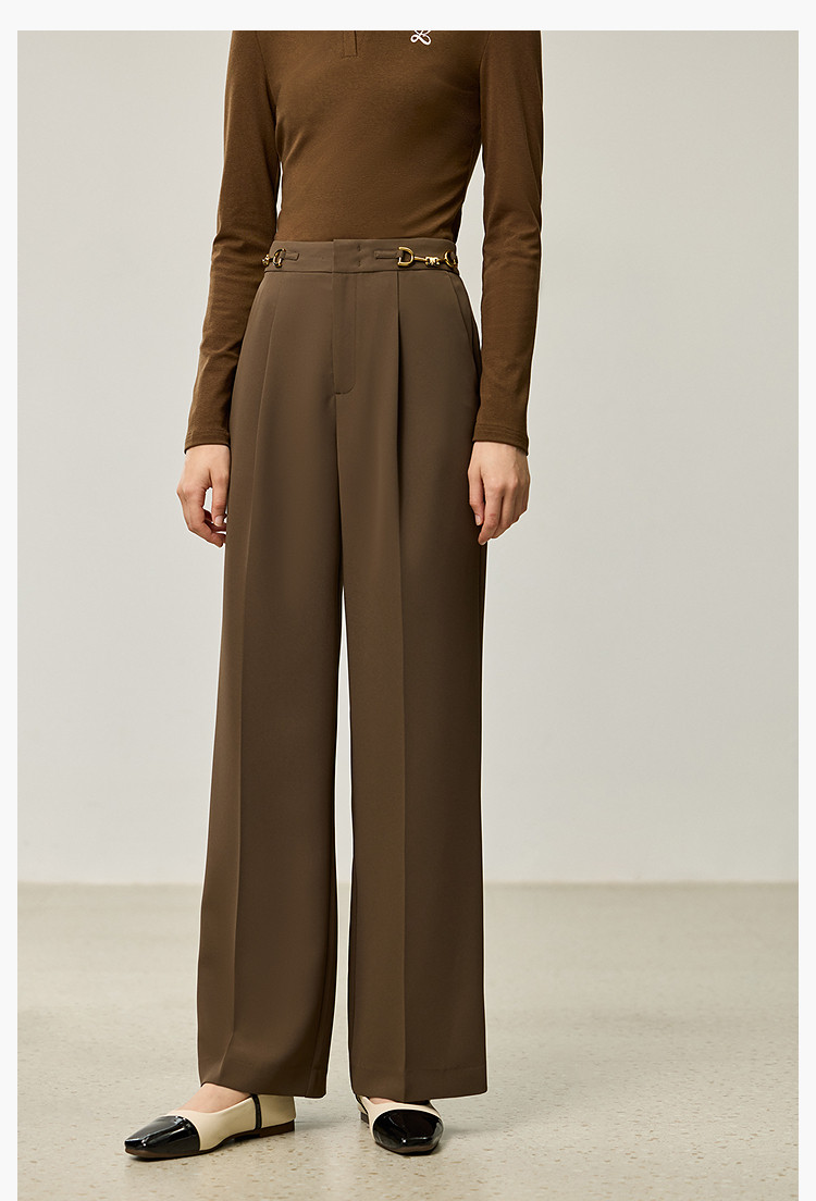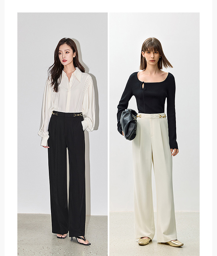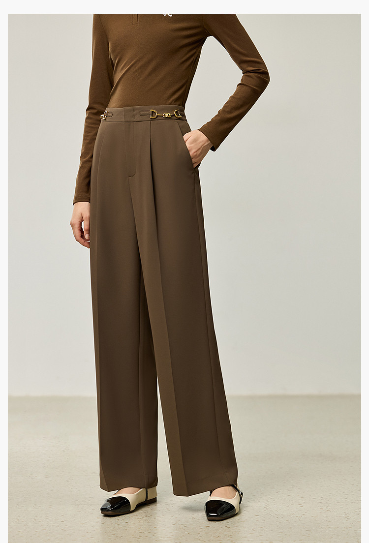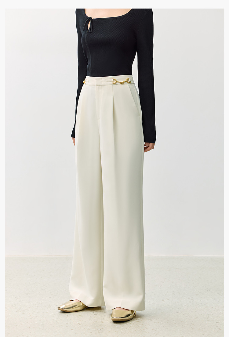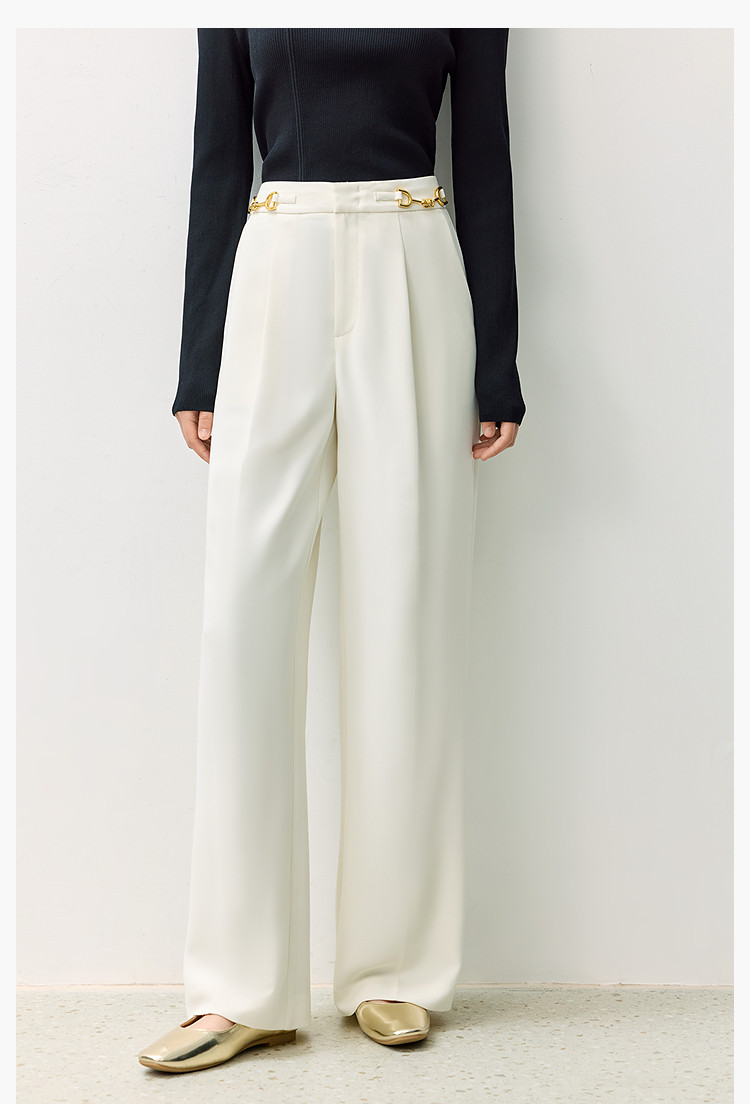 商品名称:裤子女春季款时尚百搭设计感微阔高腰直筒拖地裤西装休闲裤女 334107