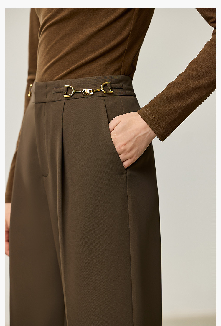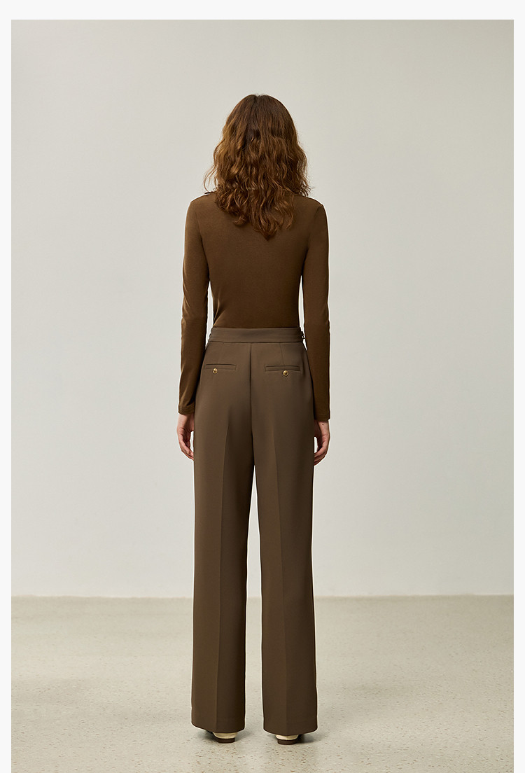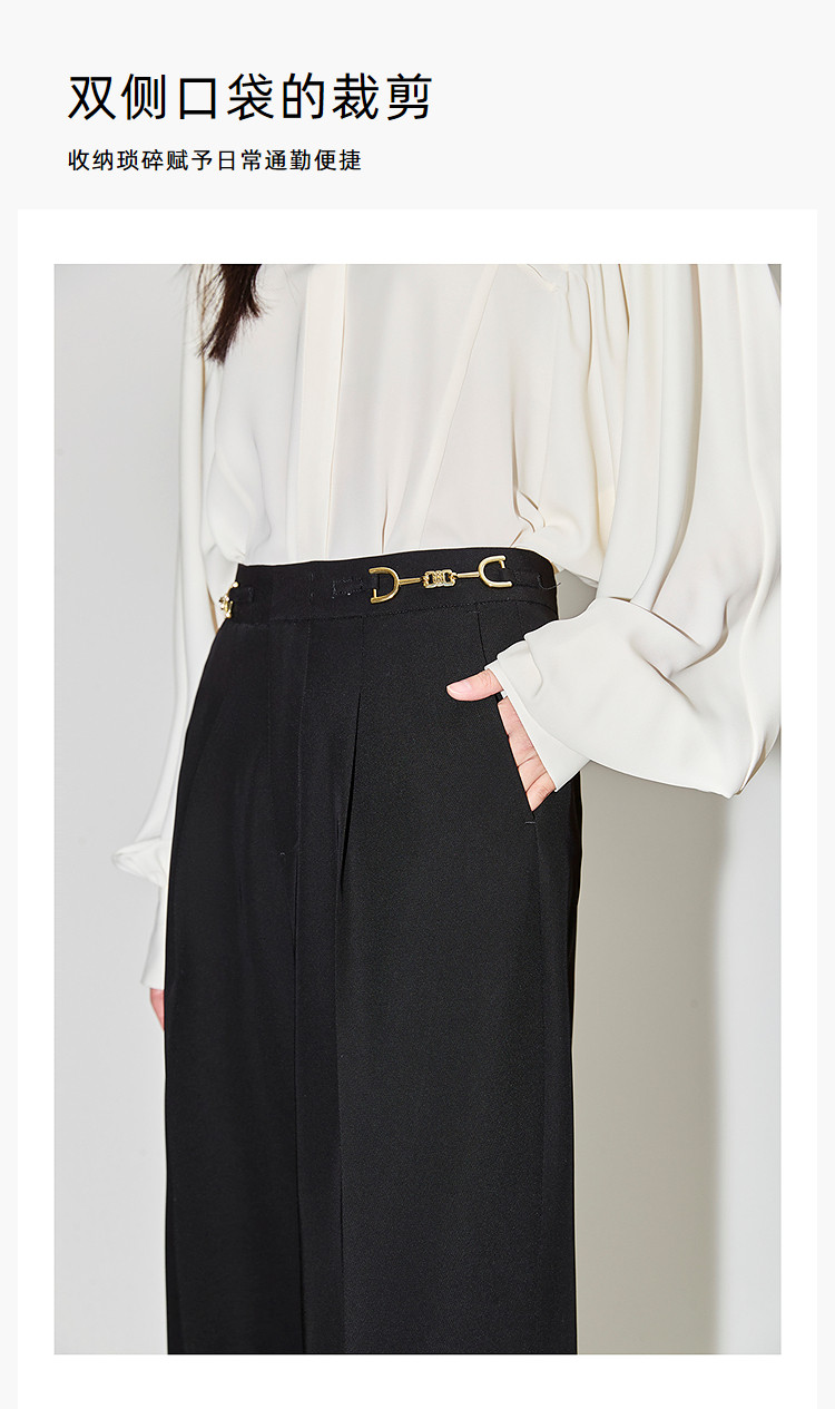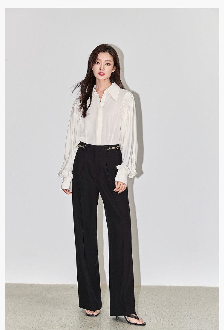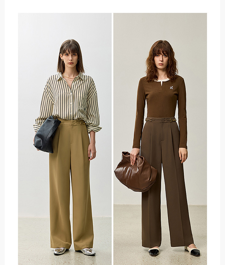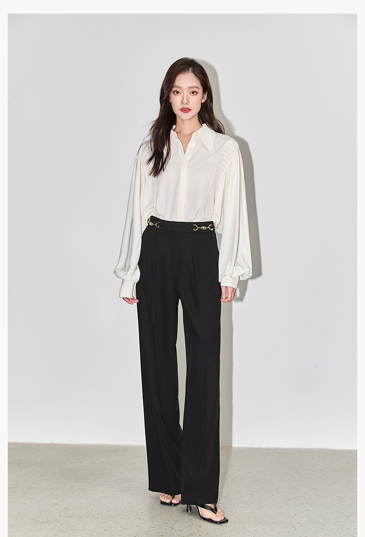 商品名称:裤子女春季款时尚百搭设计感微阔高腰直筒拖地裤西装休闲裤女 334107