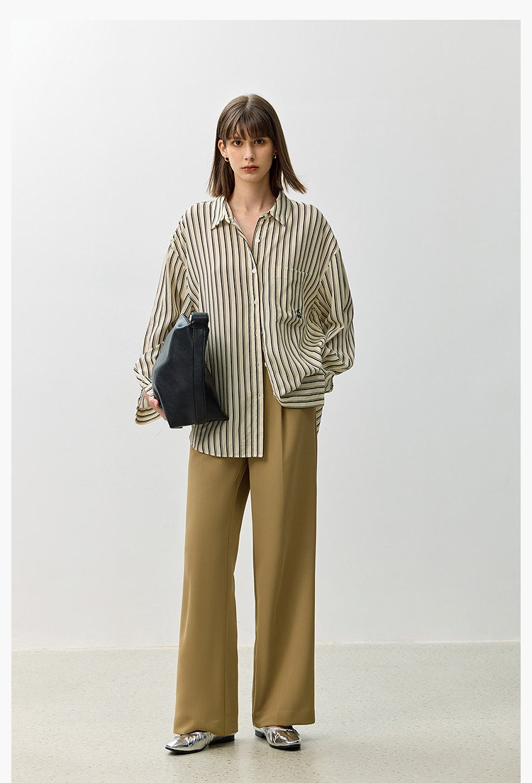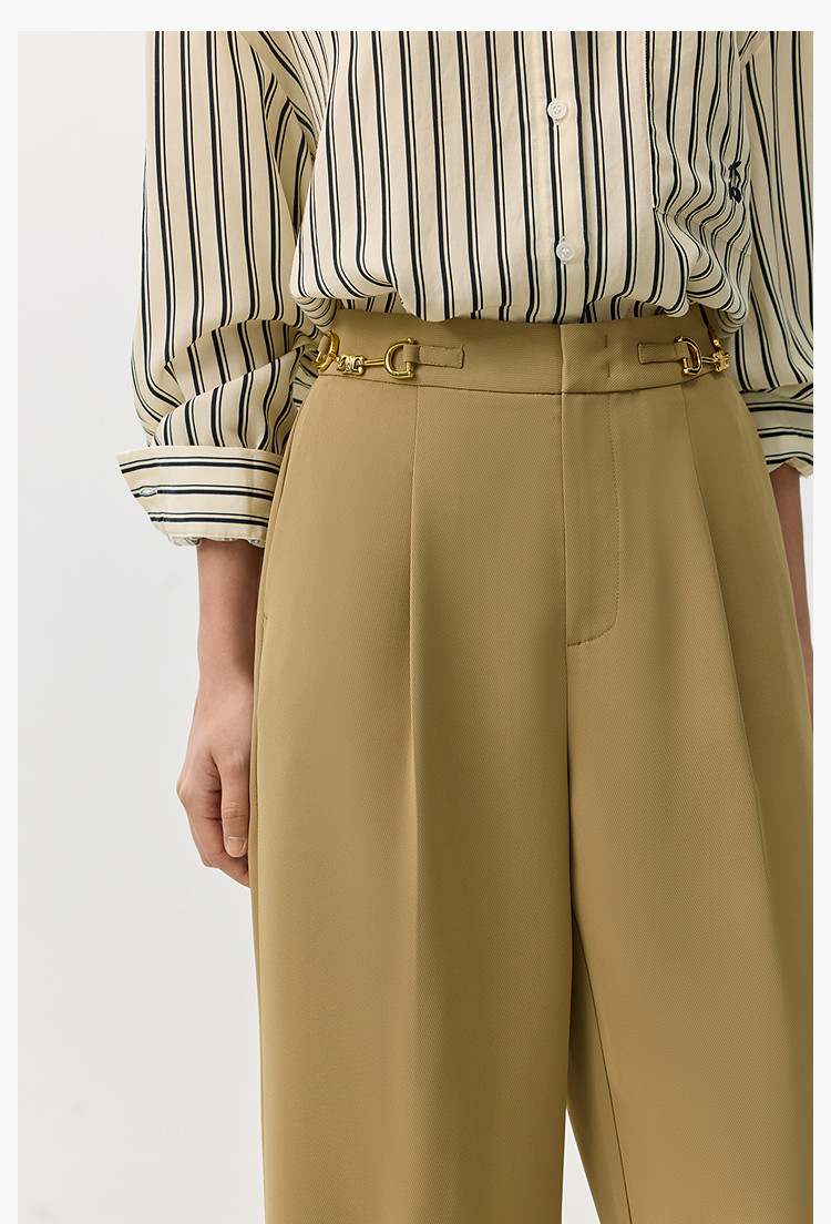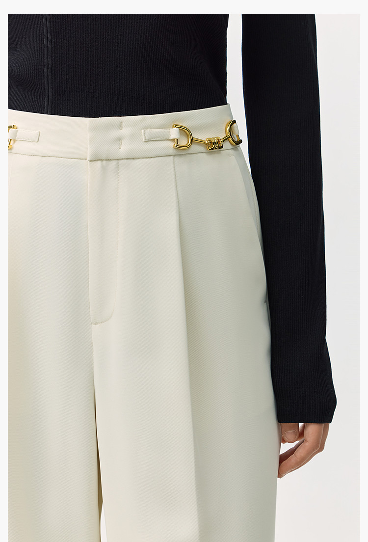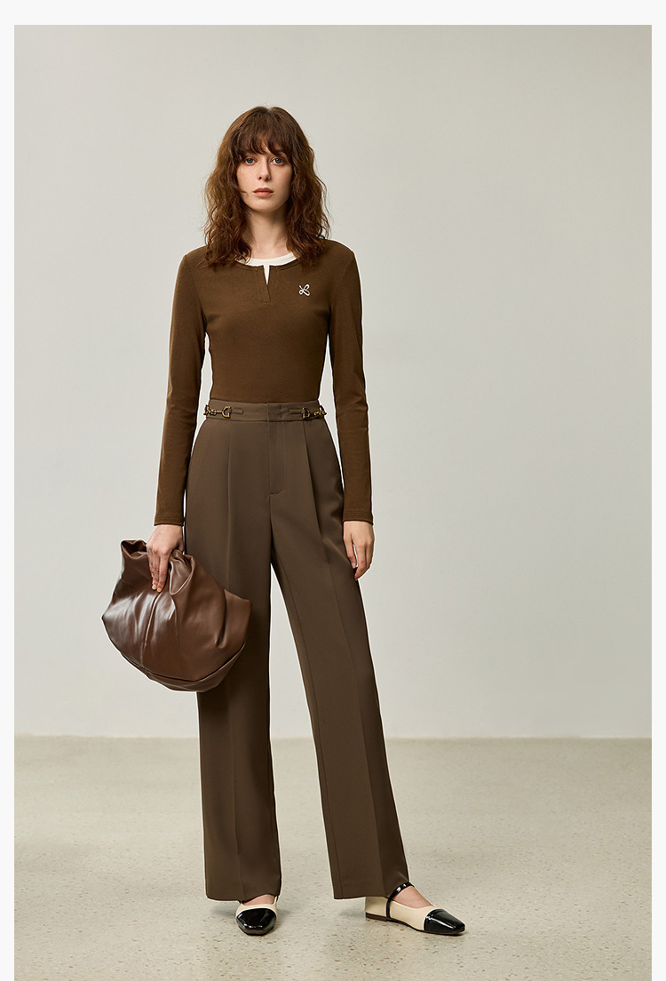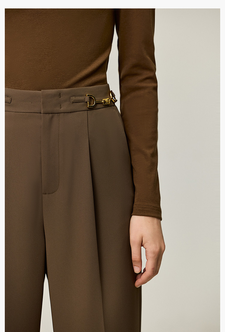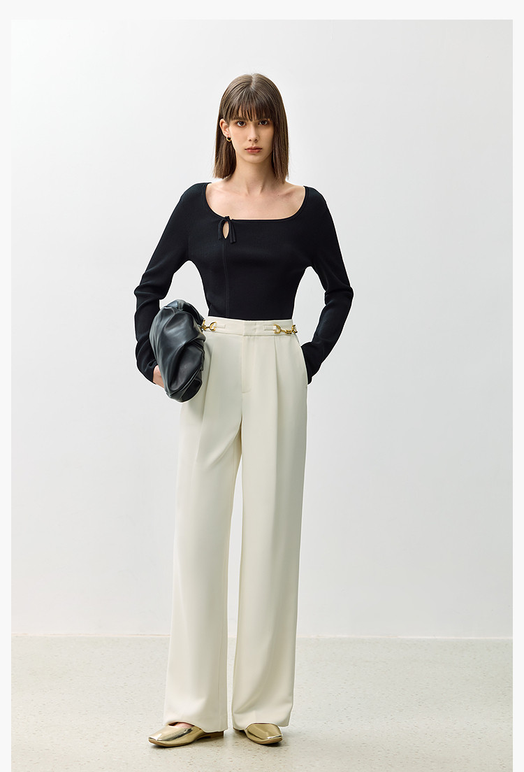 商品名称:裤子女春季款时尚百搭设计感微阔高腰直筒拖地裤西装休闲裤女 334107