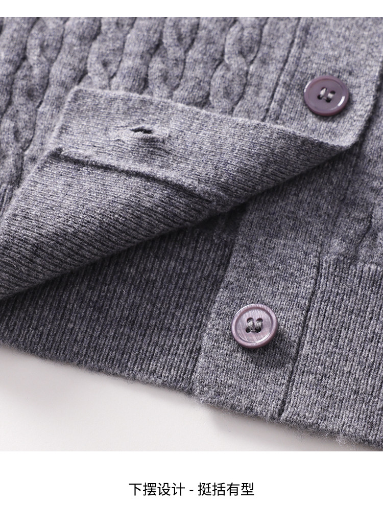 商品名称:假两件100%绵羊毛衫纯色绞花针织衫开衫毛衣外套 525459