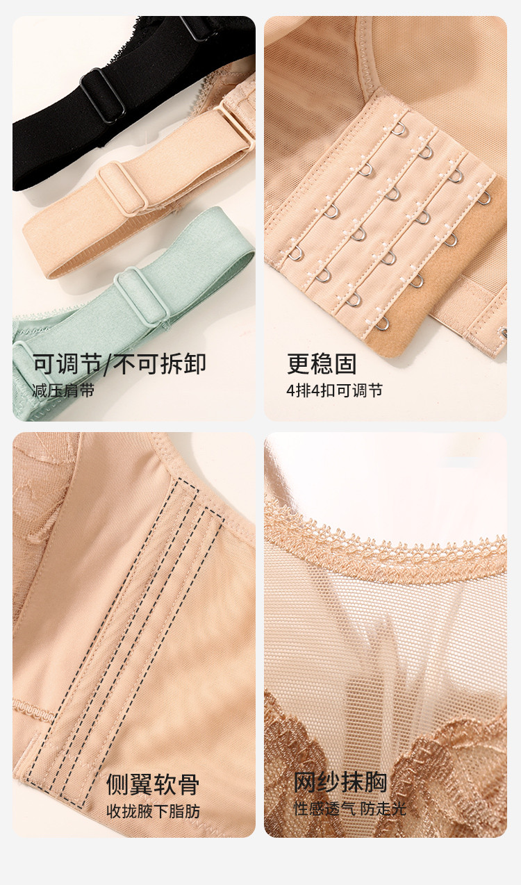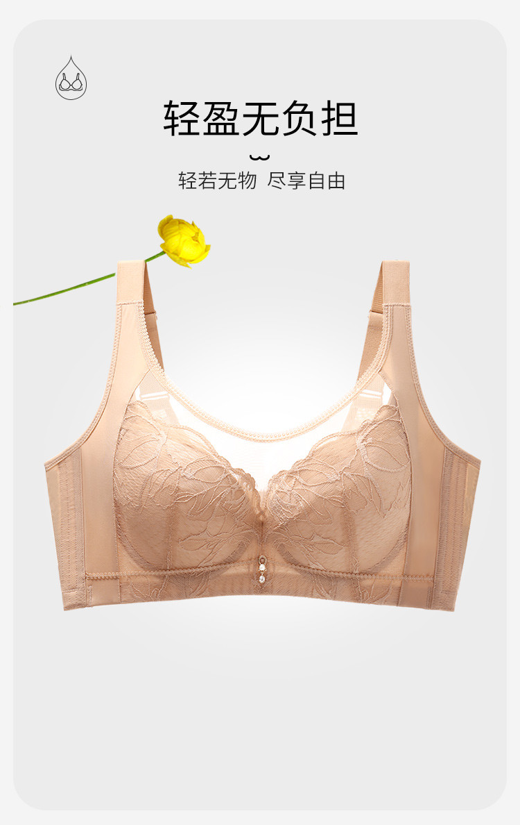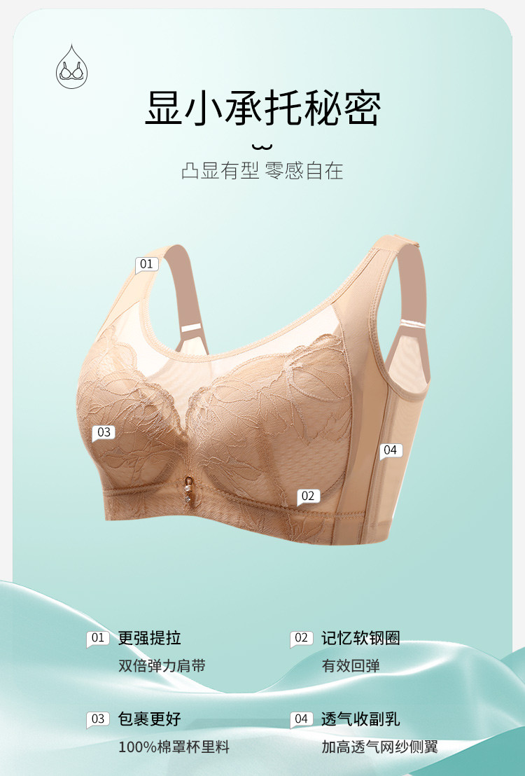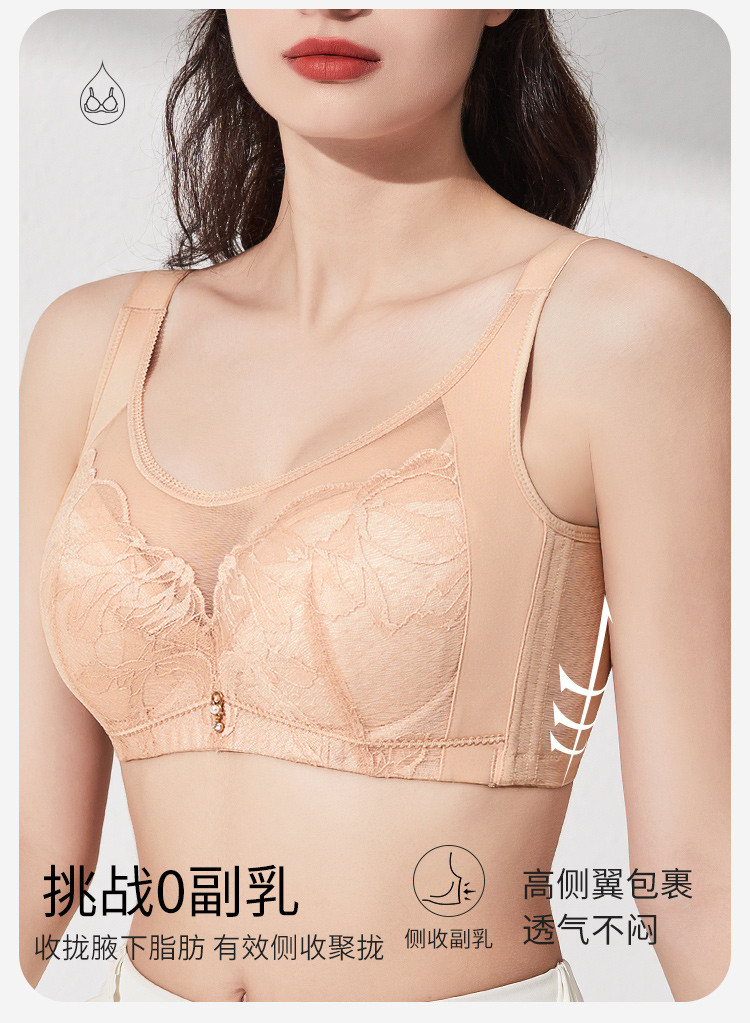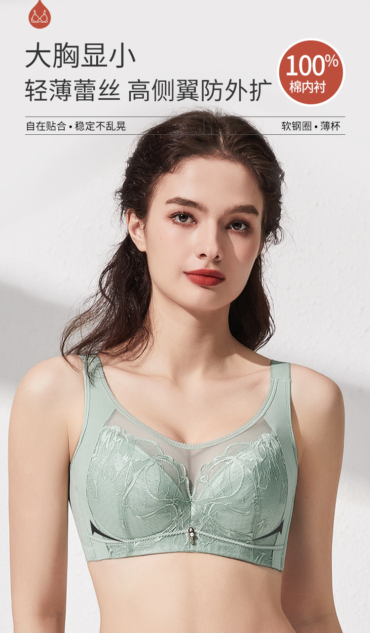 商品名称:【100%棉里杯】大胸显小轻薄蕾丝记忆软钢圈收副乳防下垂文胸 483806
