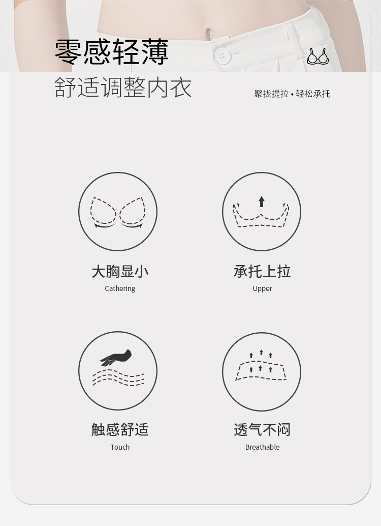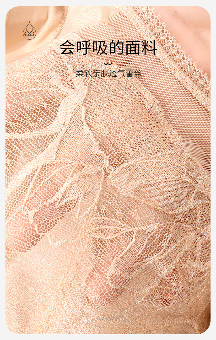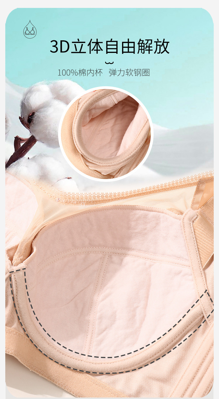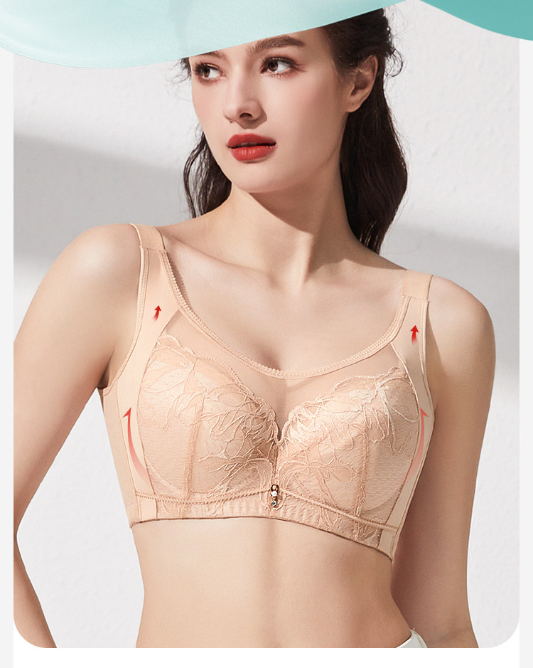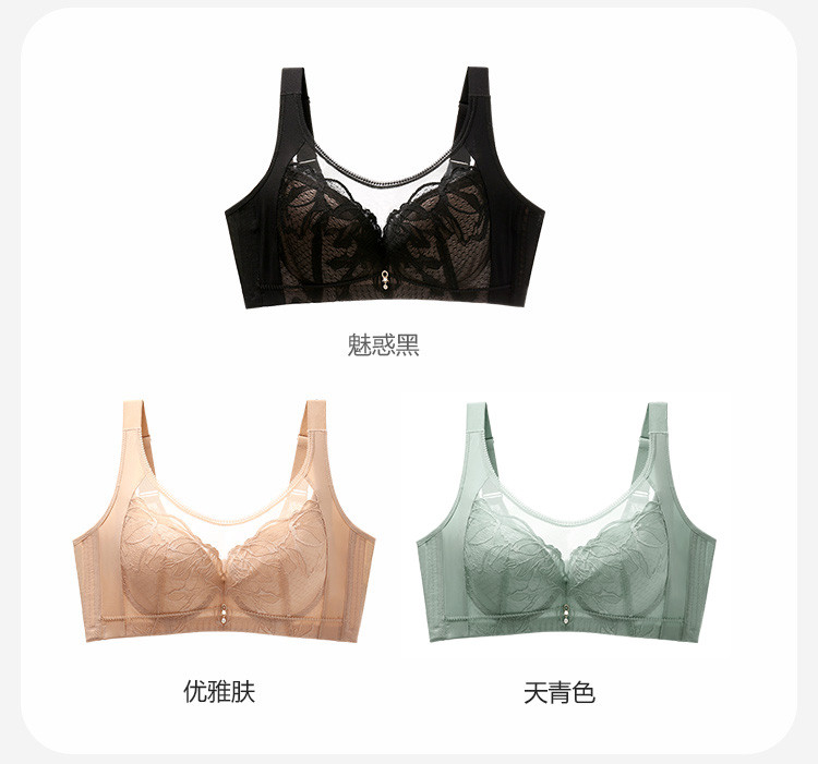 商品名称:【100%棉里杯】大胸显小轻薄蕾丝记忆软钢圈收副乳防下垂文胸 483806