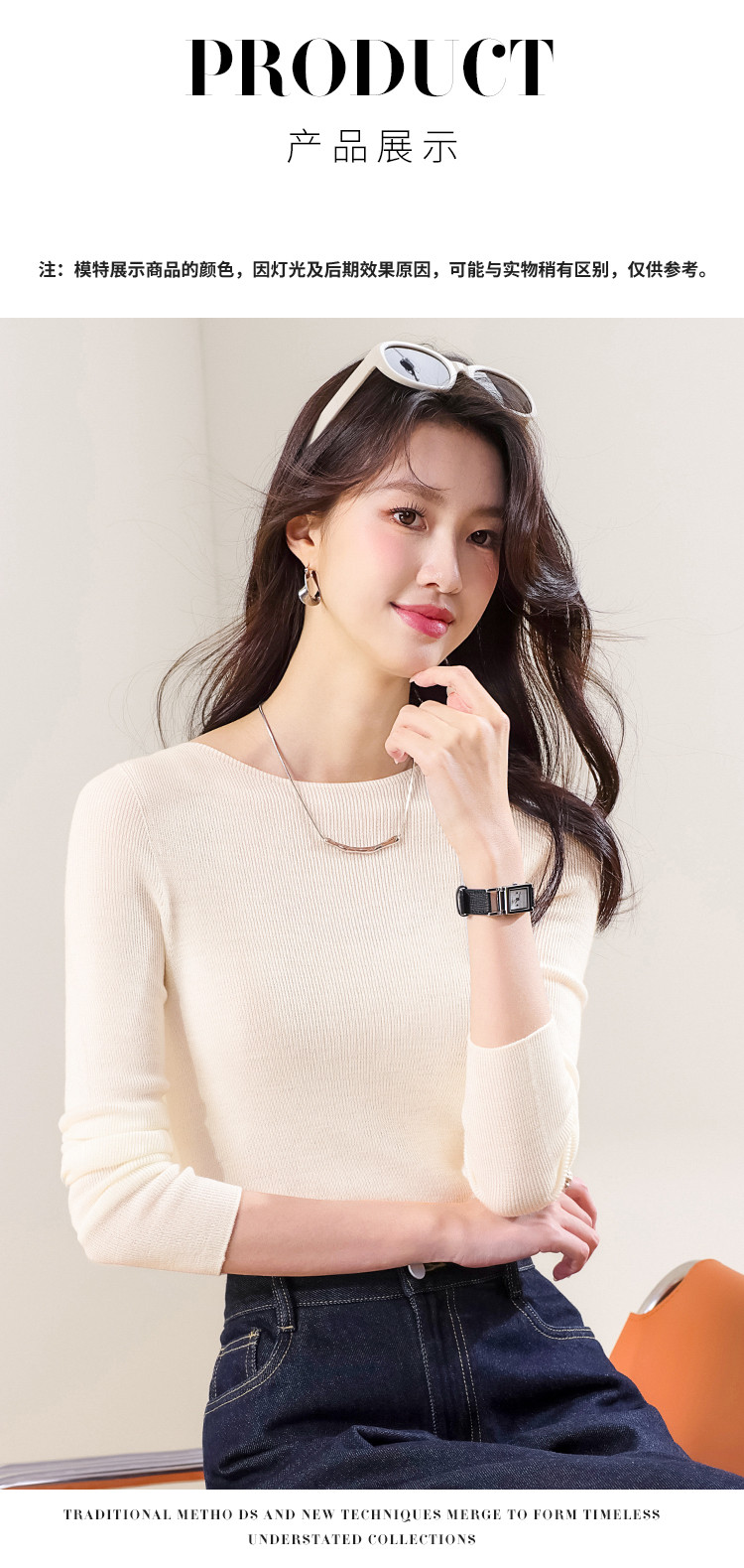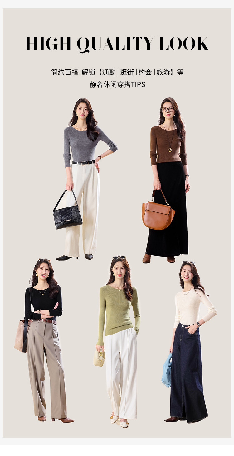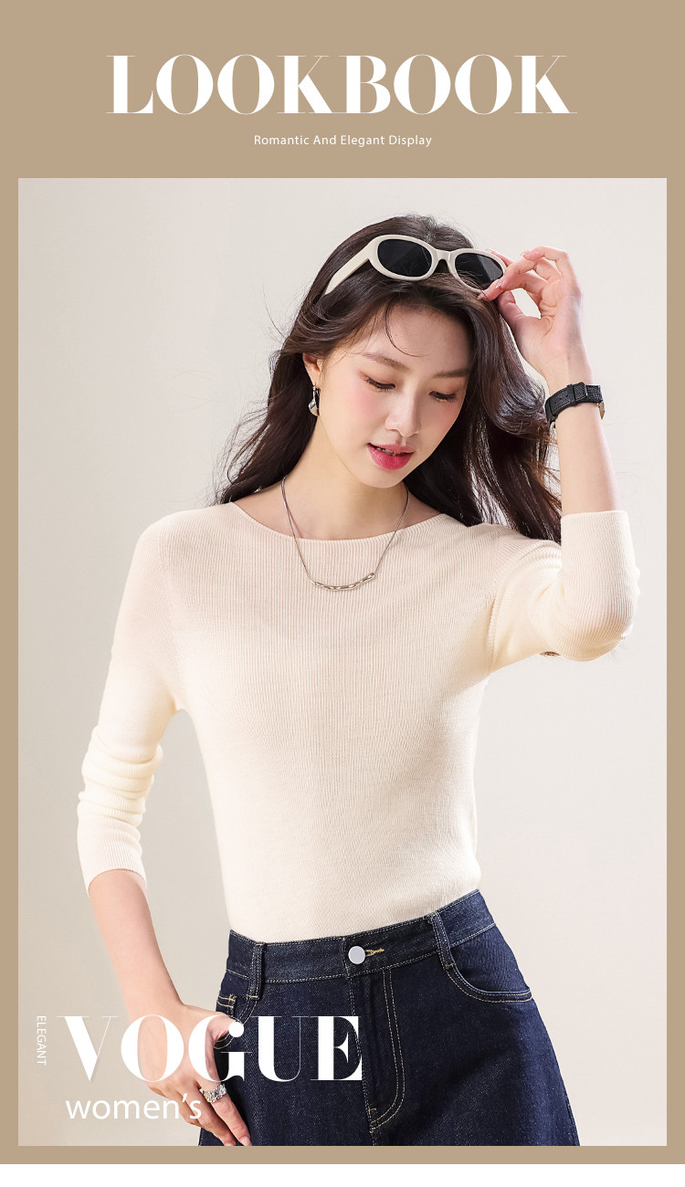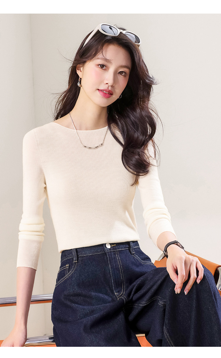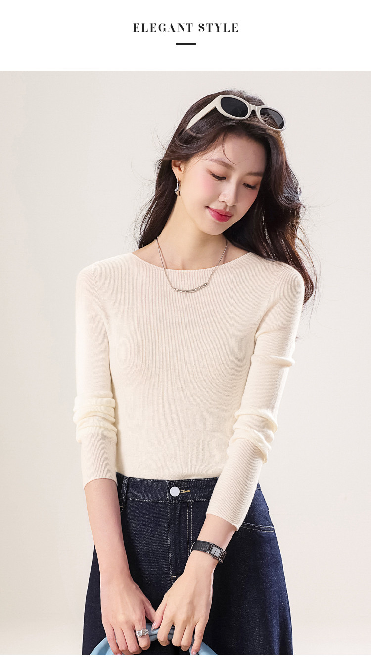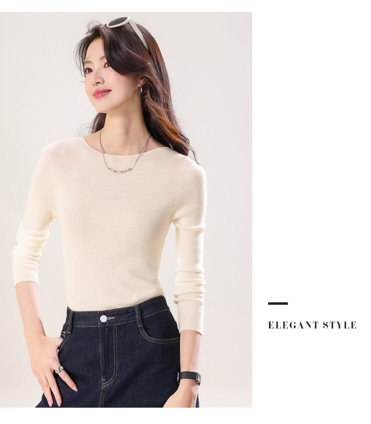商品名称:100%绵羊毛~春款纯色纯羊毛修身针织衫女一字领打底羊毛衫 142035