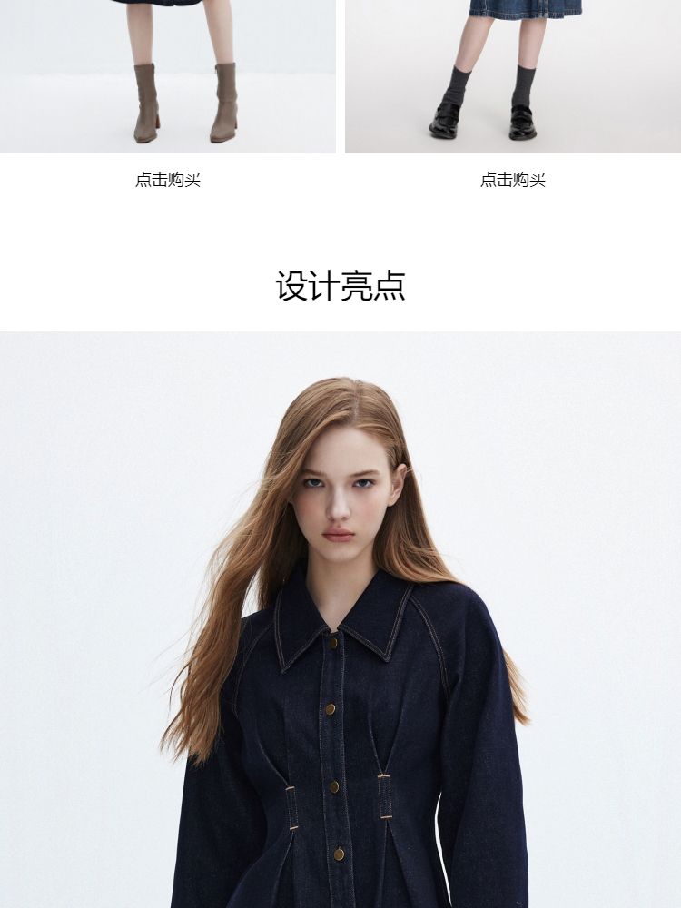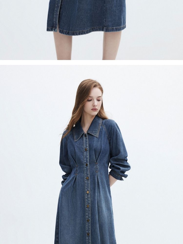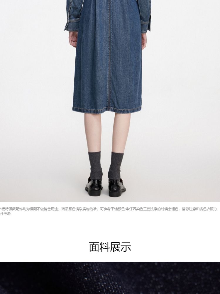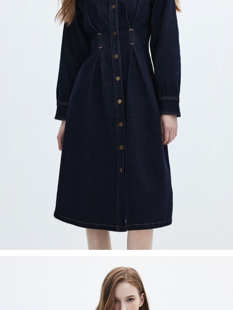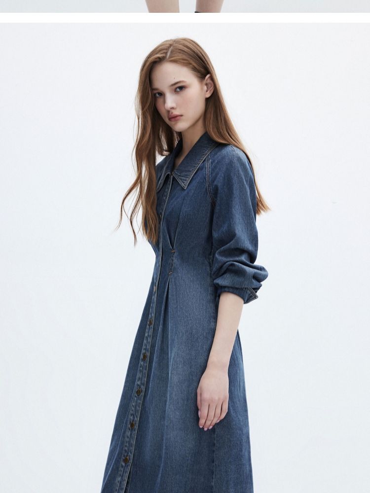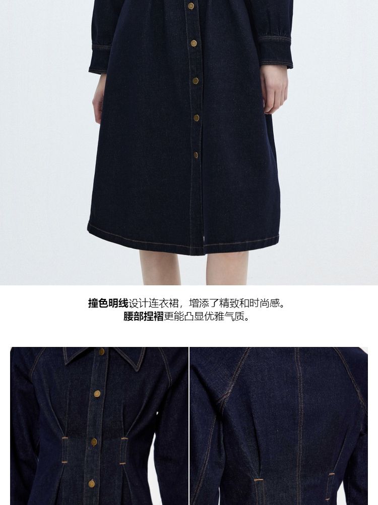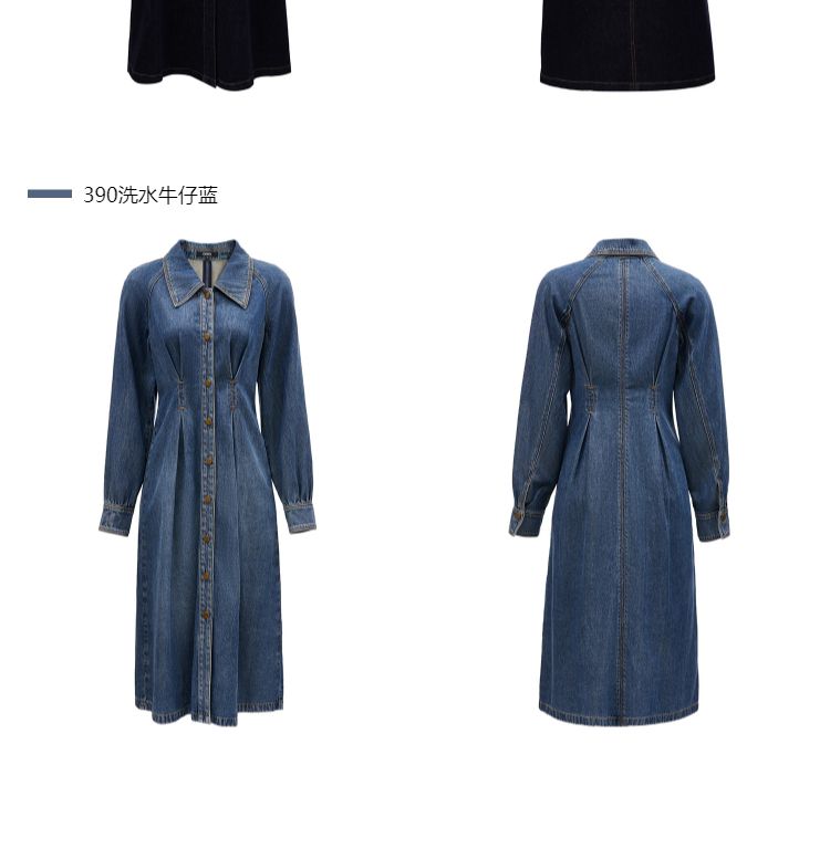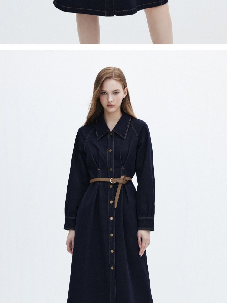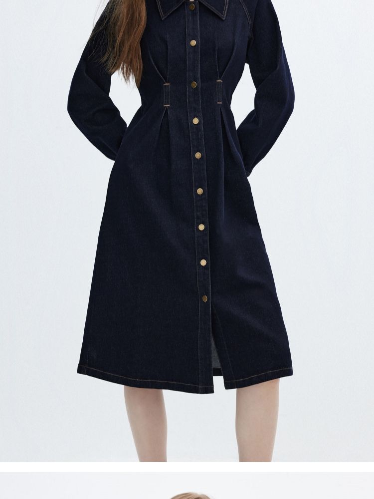 商品名称:【翻领长袖】夏季气质翻领长袖中长裙牛仔连衣裙女 098970