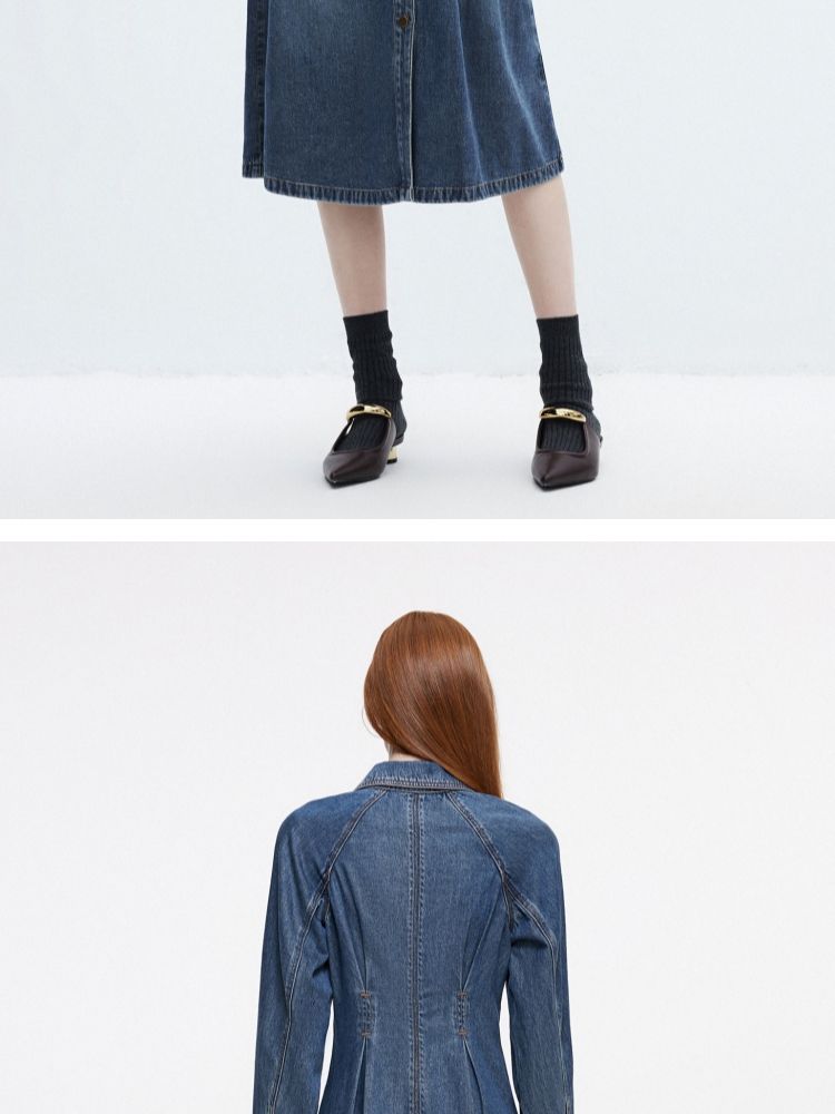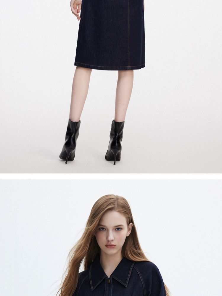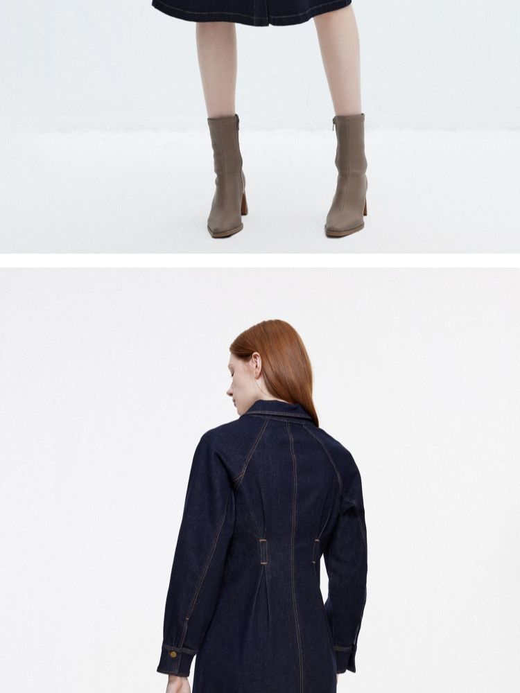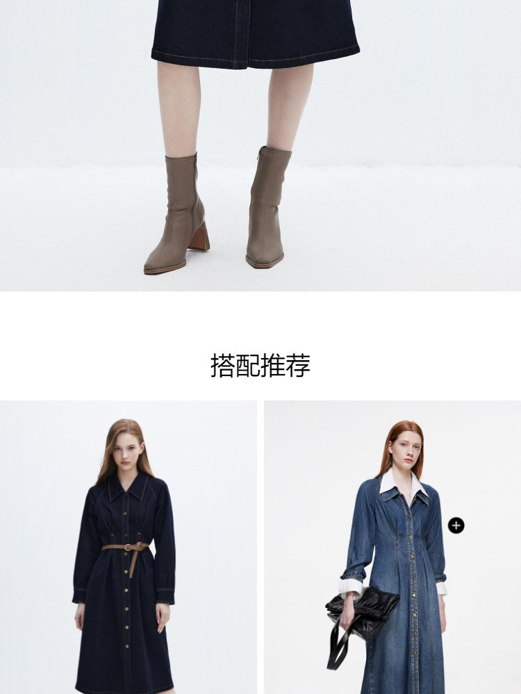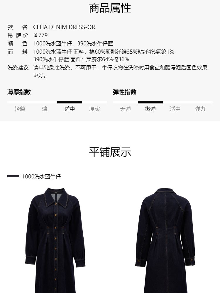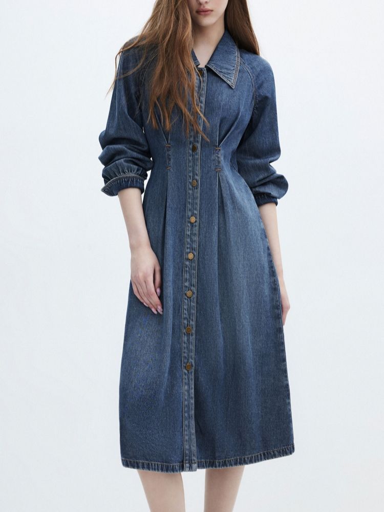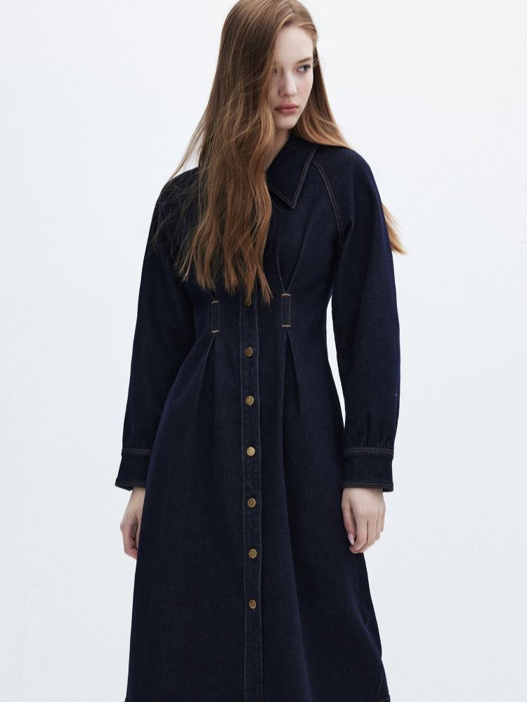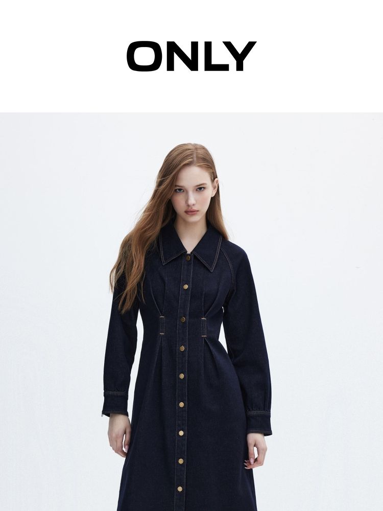 商品名称:【翻领长袖】夏季气质翻领长袖中长裙牛仔连衣裙女 098970