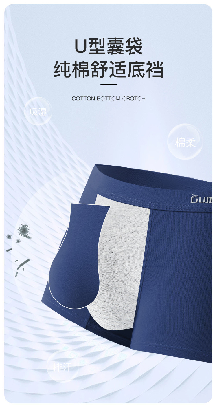 商品名称:【纯甄之选 5A抑菌】纯棉裆男士内裤男舒适透气运动平四角短裤 233227