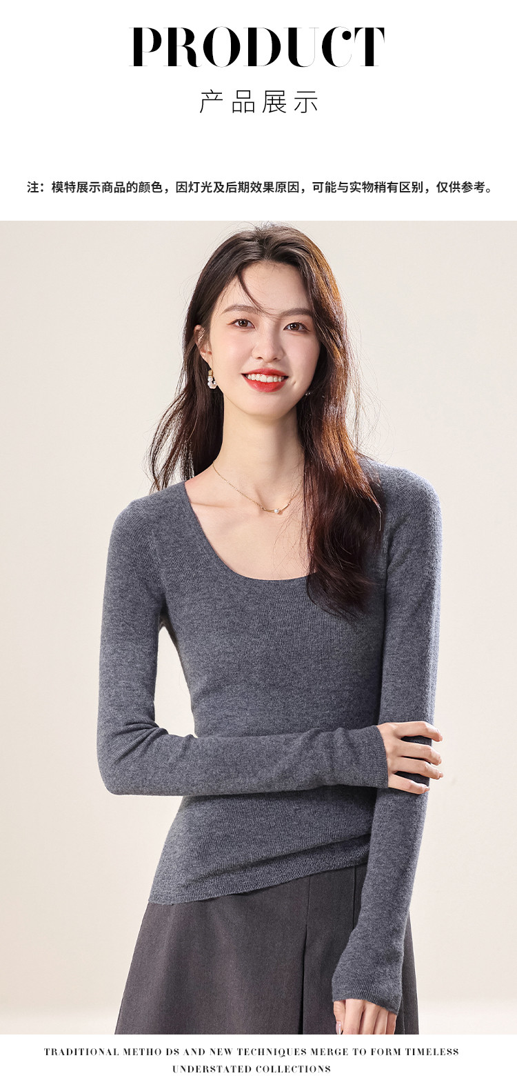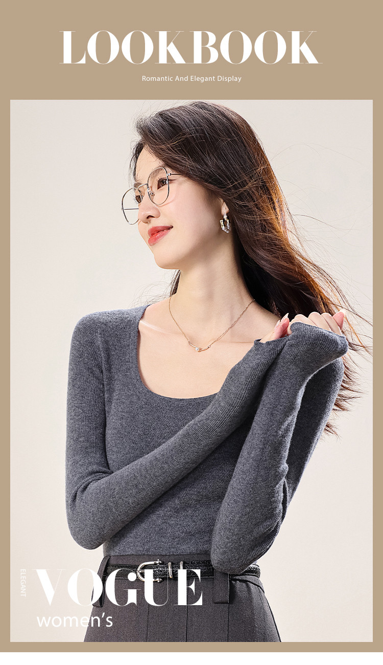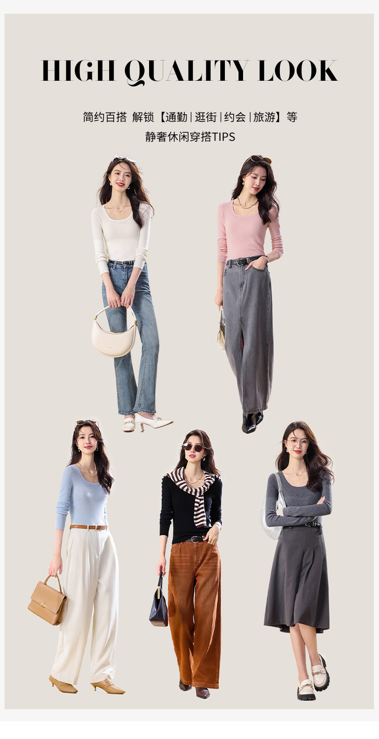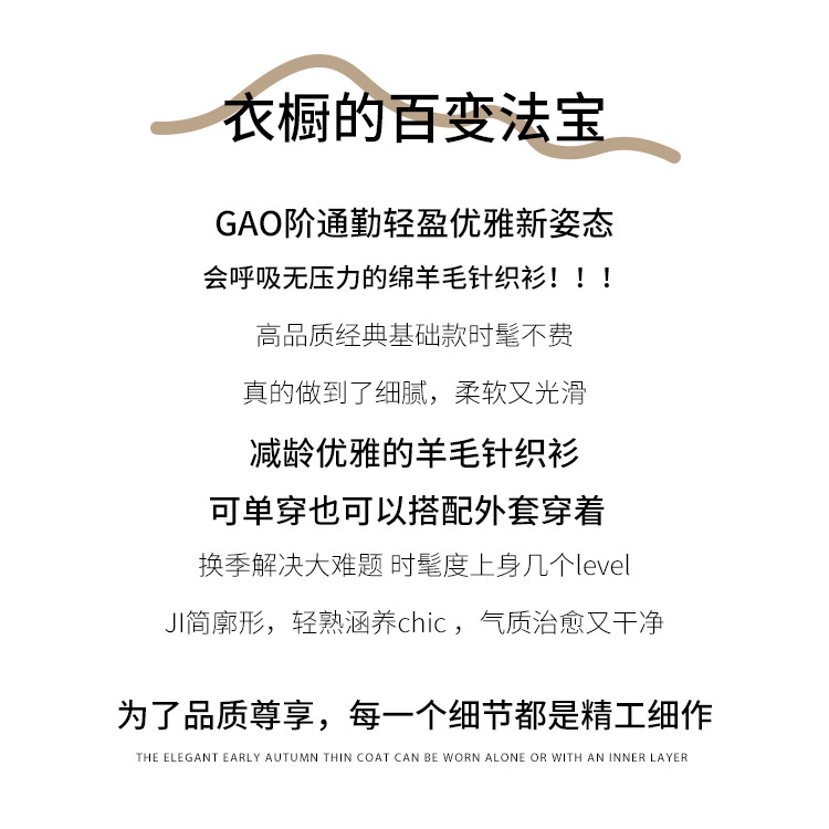 商品名称:【100%绵羊毛】春装纯色低圆领纯羊毛衫女修身针织打底衫 072403