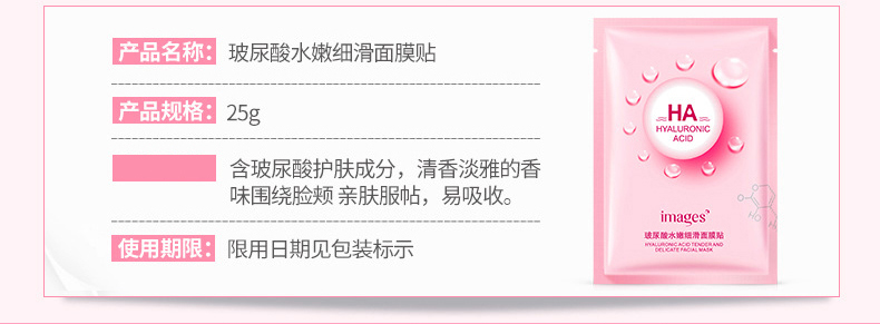 商品名称:形象美 玻尿酸水嫩细滑面膜 (50片)