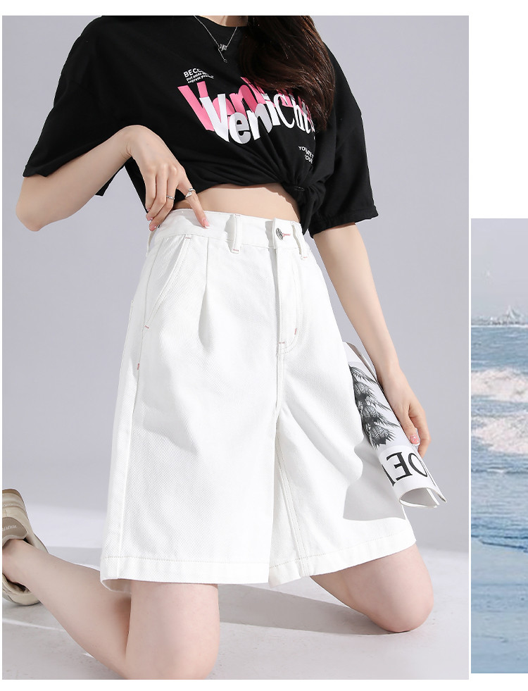 商品名称:【纯棉亲肤】夏季女款休闲宽松牛仔裤女五分裤棉无弹撞色线短裤子 375361