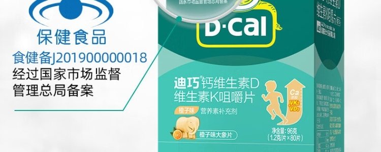 商品名称:美国 迪巧(D-cal)钙维生素D维生素K咀嚼片维生素1.2g*80片 橙子味