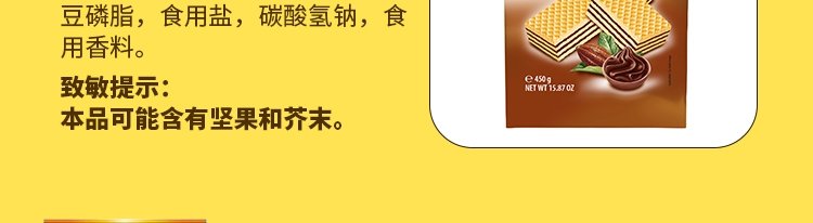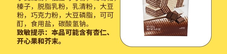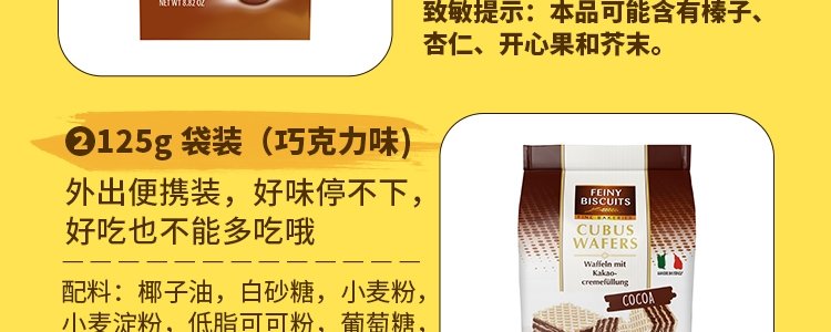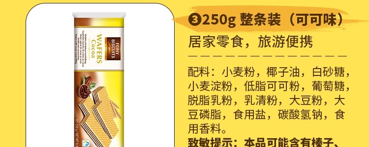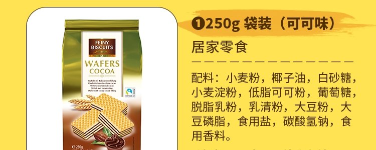商品名称:意大利 福囡囡(FEINY)可可味威化饼干 250g/盒