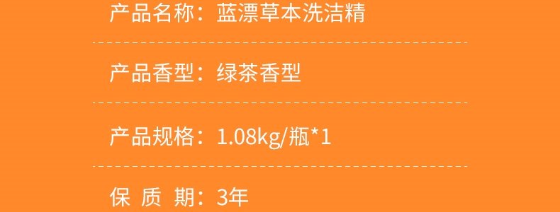 商品名称:蓝漂 草本洗洁精 1.08kg/瓶