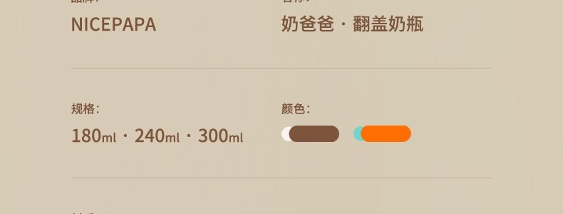 商品名称:奶爸爸(Nice Papa)水嘴带重力球奶瓶(12个月)卡其色 300ml