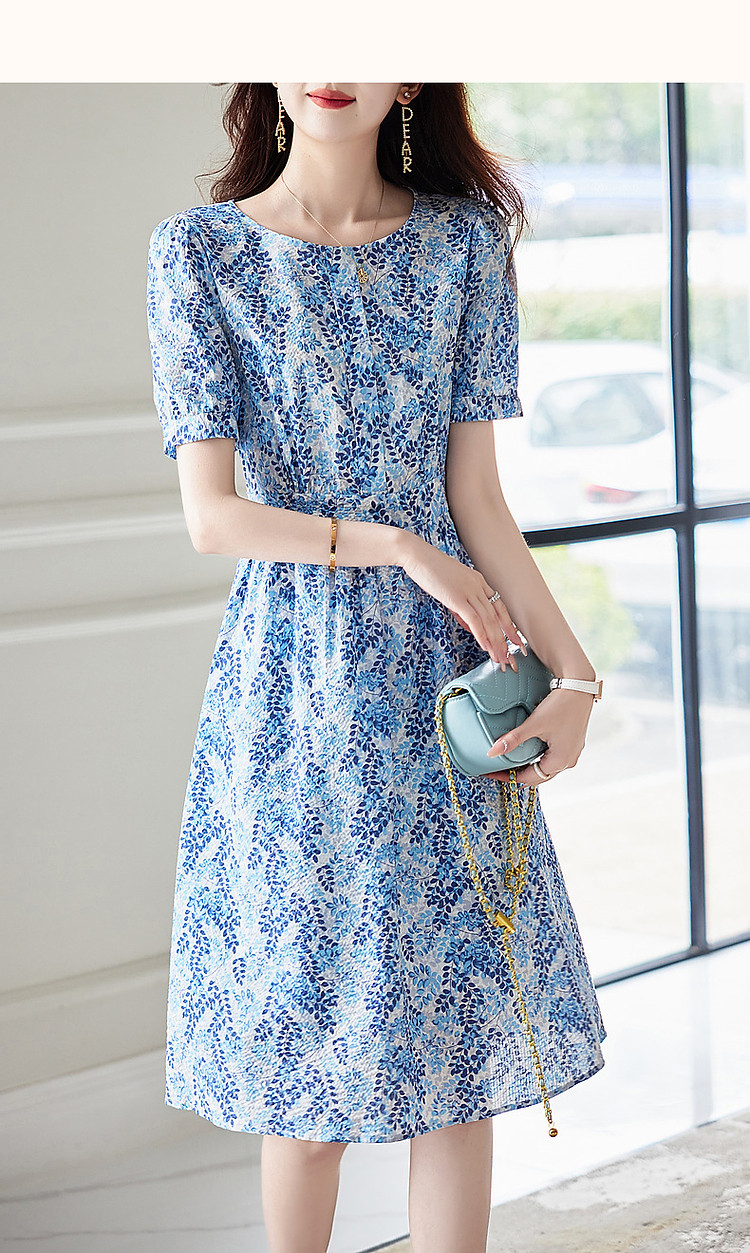 商品名称:【莫奈花园】夏法式云朵棉泡泡袖高清印花藏肉舒适好搭A字连衣裙 934785