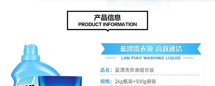商品名称:蓝漂 洗衣液 2kg/瓶 【送薰衣草500g*1袋】