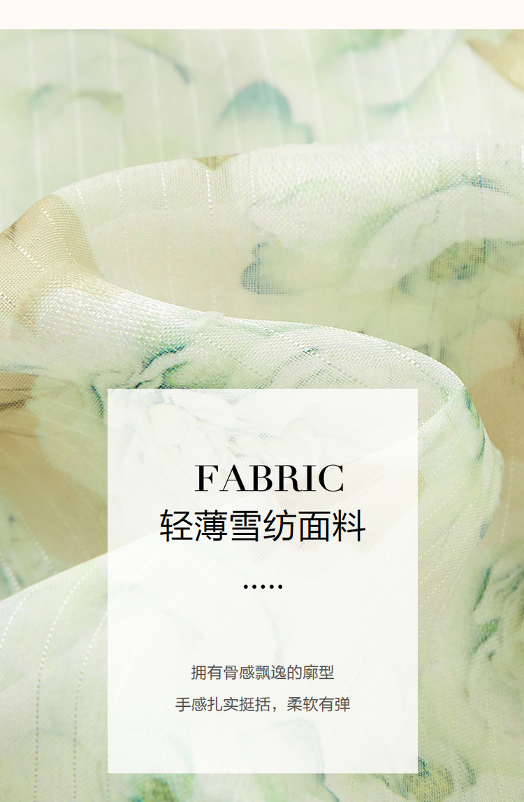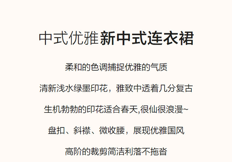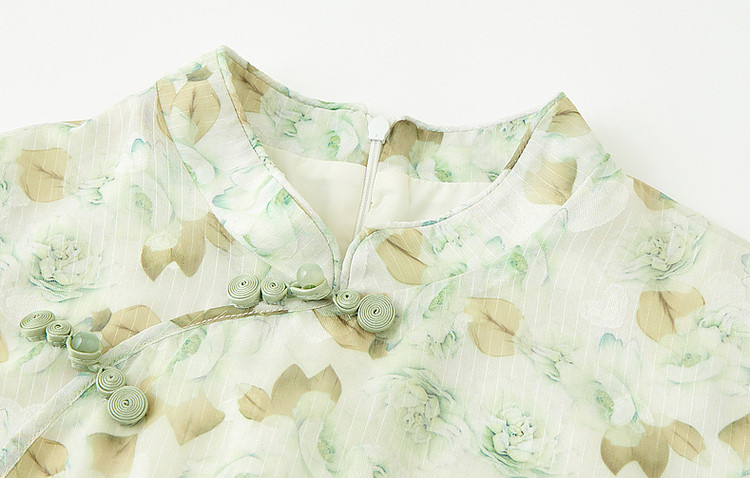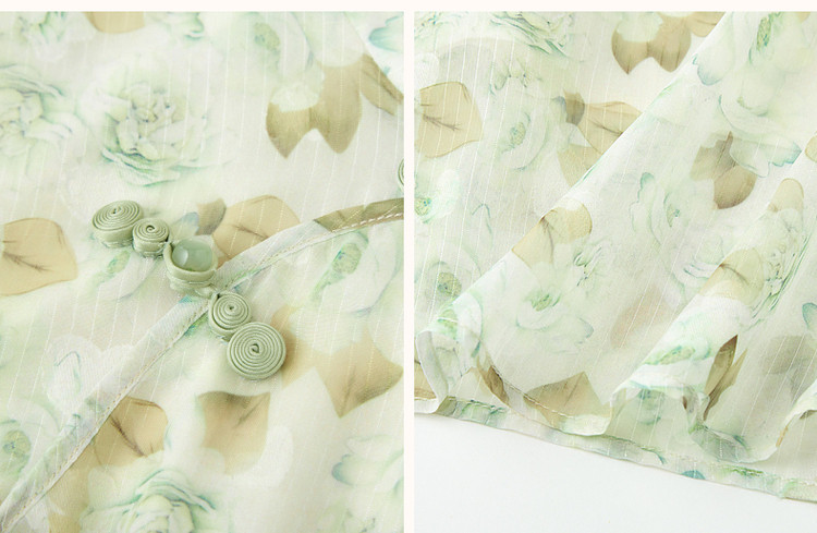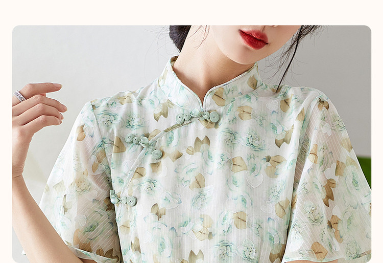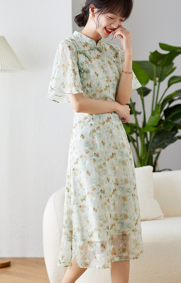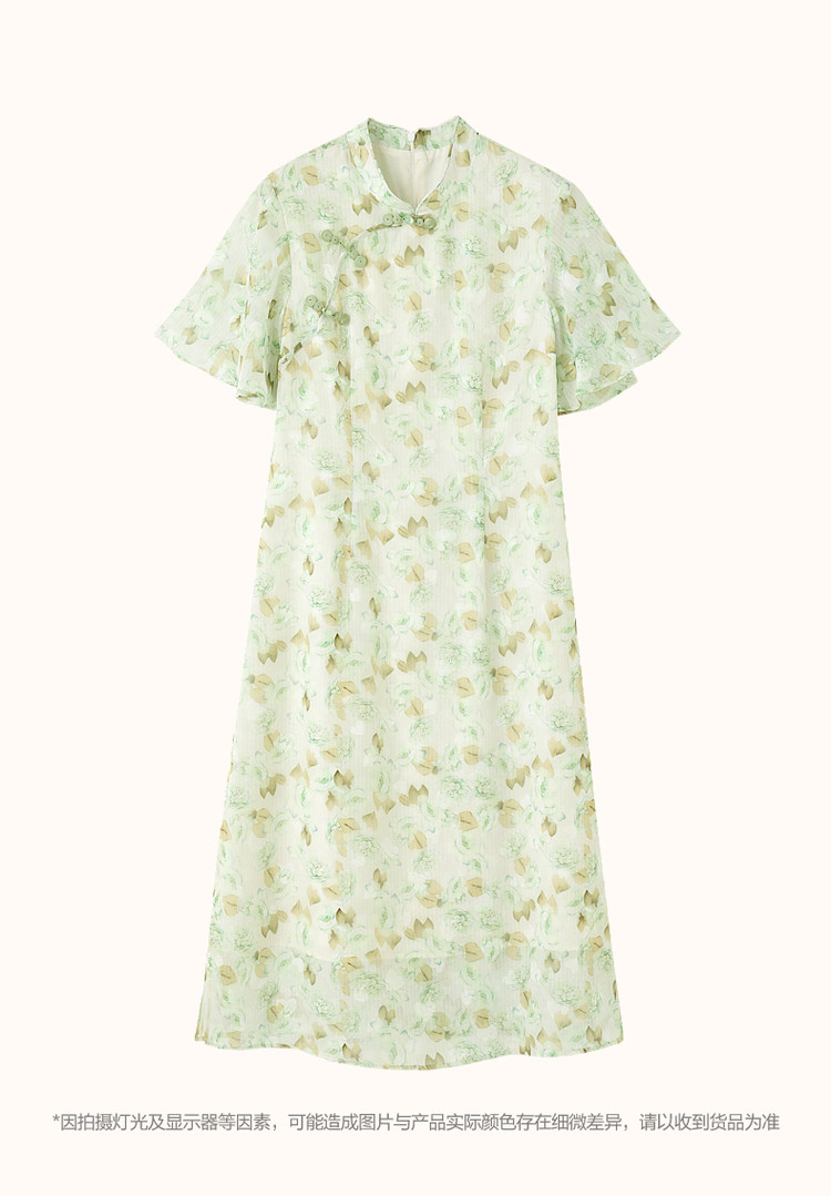 商品名称:【中式水墨印花雪纺旗袍裙】春秋盘扣荷叶袖开衩连衣裙女 743617