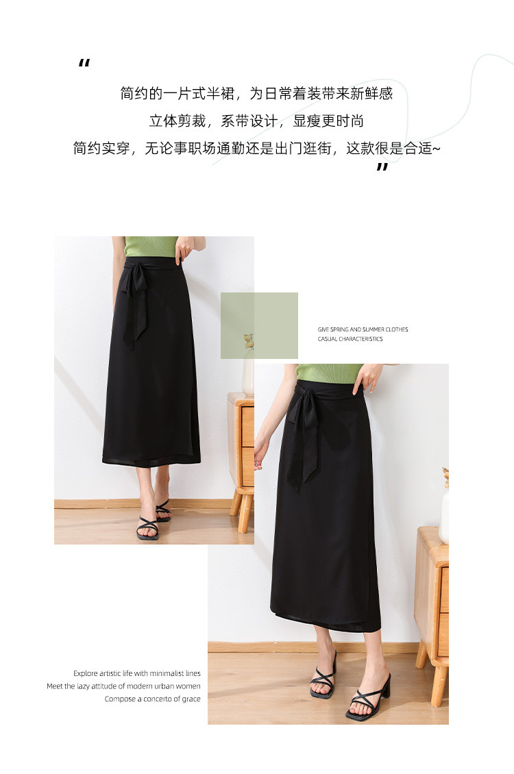 商品名称:夏季气质半身裙开叉女侧边绑带高腰包臀裙中长一步裙子 866776