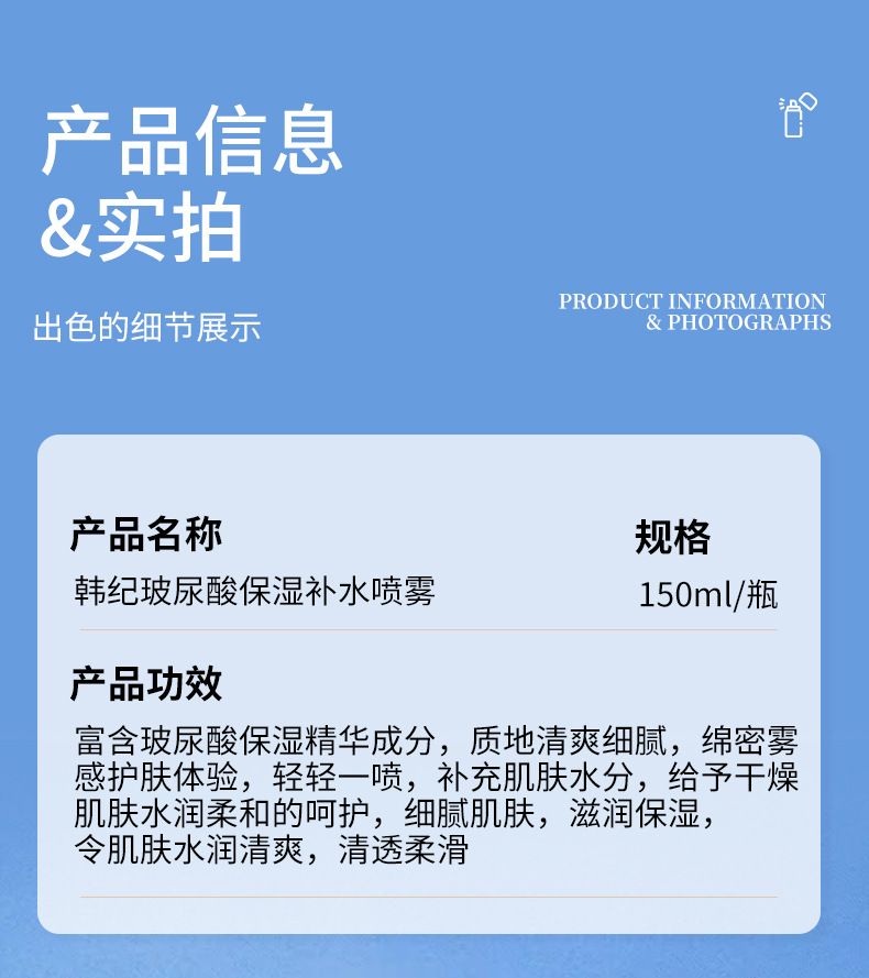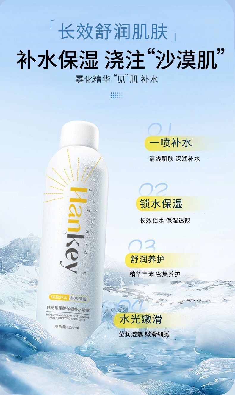 商品名称:Hankey/韩纪 玻尿酸保湿补水喷雾150ml